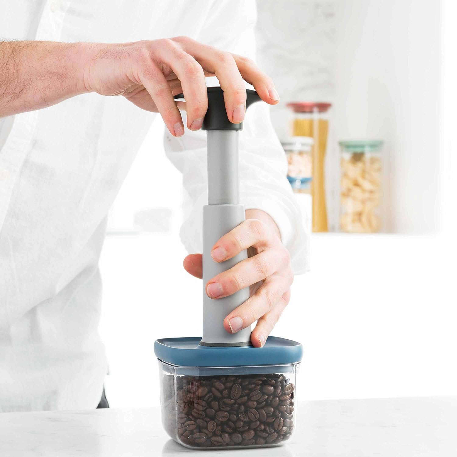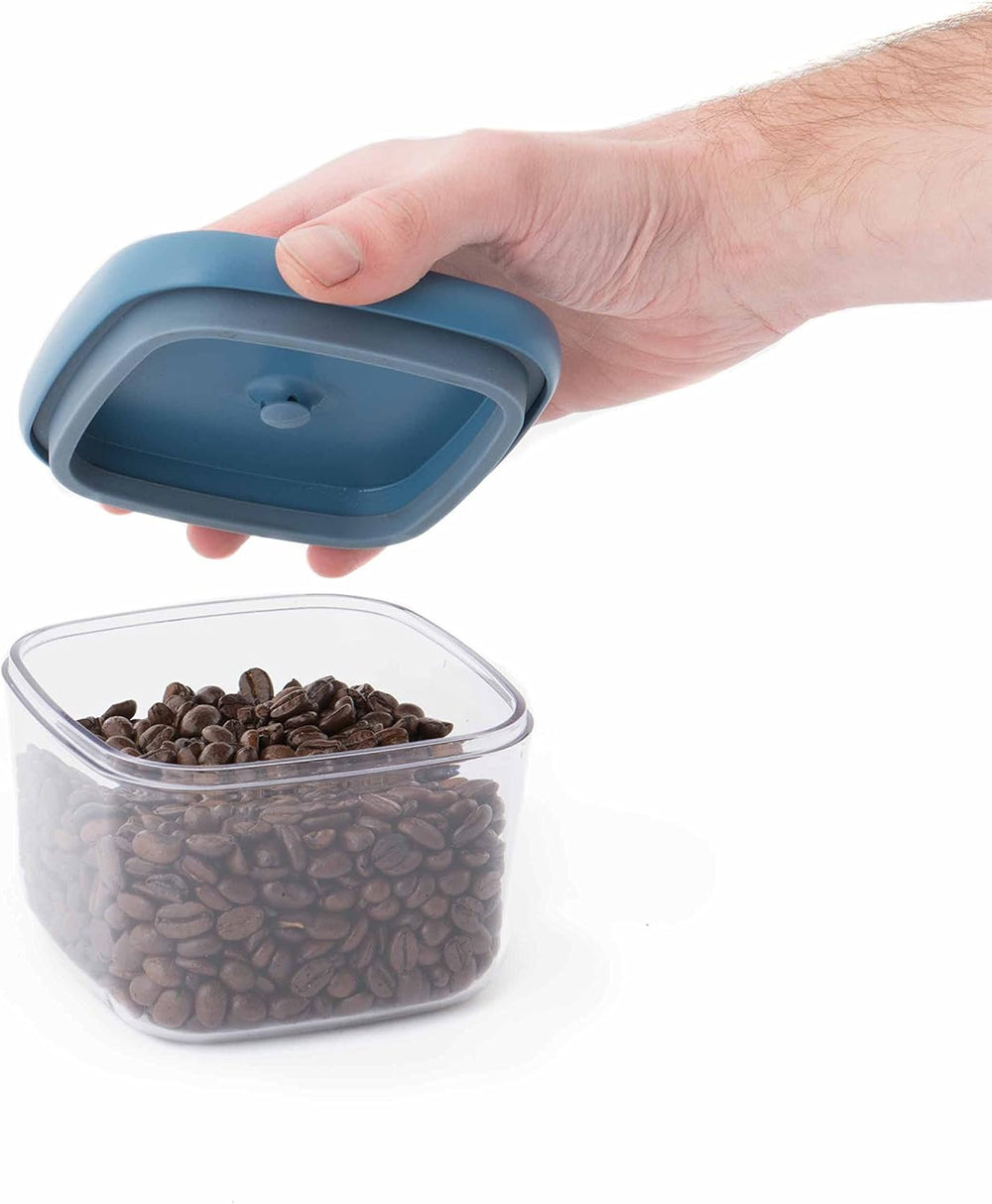 - Schont die Lebensmittel, indem die gesamte Luft entfernt wird, die normalerweise zu einem Verlust von Frische und Verfärbungen führen kann. Jeder Behälter hat ein Silikonventil und eine luftdichte Dichtung.