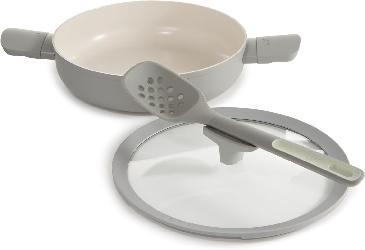 PRODUKTBESCHREIBUNGEN Wenn Sie ein schmackhaftes Risotto zubereiten oder Kartoffeln für das Abendessen anbraten möchten, aber keine Lust haben, danach lange aufzuräumen, ist diese beschichtete Sauteuse der perfekte Partner. Ihr Korpus aus 100 % recyceltem Aluminium sorgt für eine schnelle und gleichmässige, energieeffiziente Wärmeverteilung auf allen Herdarten, einschliesslich Induktion. Sie ist mit einer hochwertigen, nachhaltigen und gesunden keramischen Antihaftbeschichtung versehen, die nicht nur das Kochen mit wenig bis gar keinem Öl ermöglicht, sondern auch die Reinigung der Pfanne zu einem Kinderspiel macht. Zusammen mit den kühl bleibenden Griffen mit Löffelablage und dem Klarglasdeckel, der mit einer Siebfunktion zum einfachen Abgiessen ausgestattet ist, haben Sie ein Kochgeschirr, das Ihnen das Leben leichter machen wird!