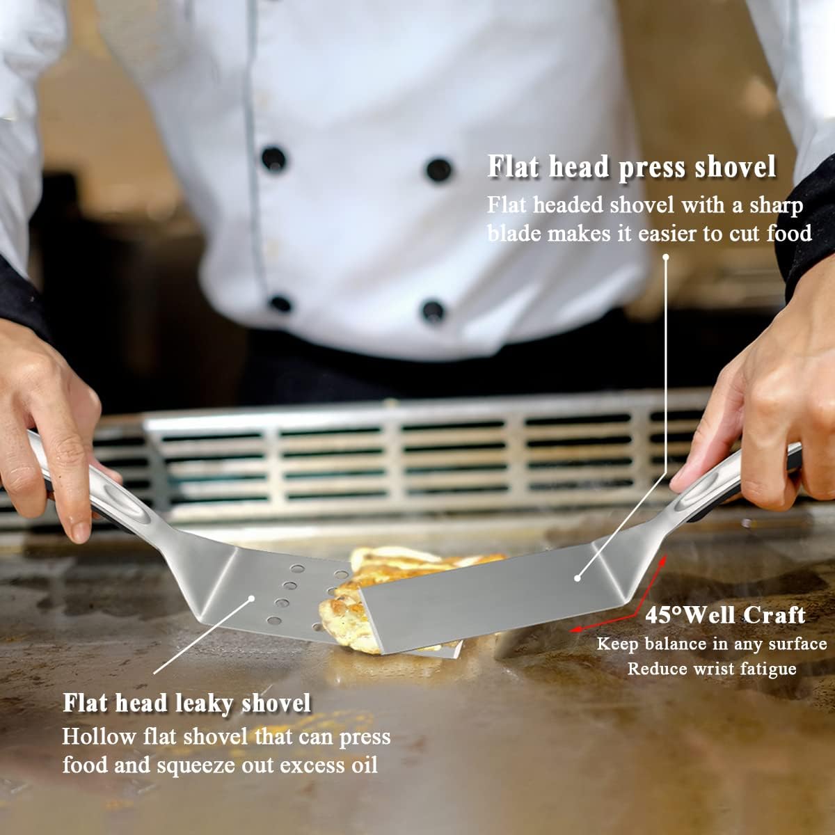 - Umfassendes Werkzeugset: Das 5-teilige Set enthält grundlegende Grillwerkzeuge wie 1 lange Fritteuse, 1 lange Ölschaufel, 1 kurze Ölschaufel, 1 kurze Ölschaufel, 1 kurze Ölschaufel zum einfachen Garen einer Vielzahl von Lebensmitteln.
