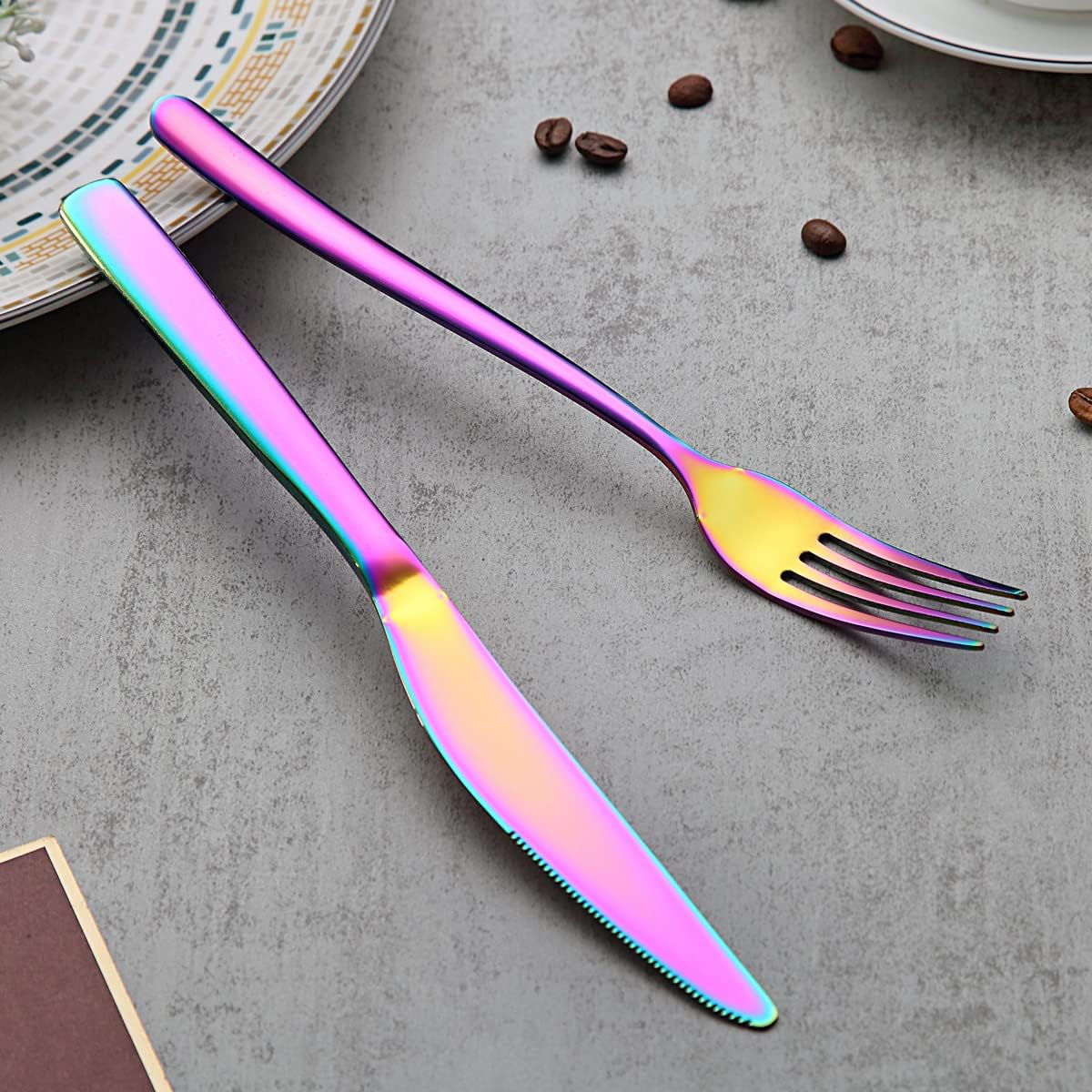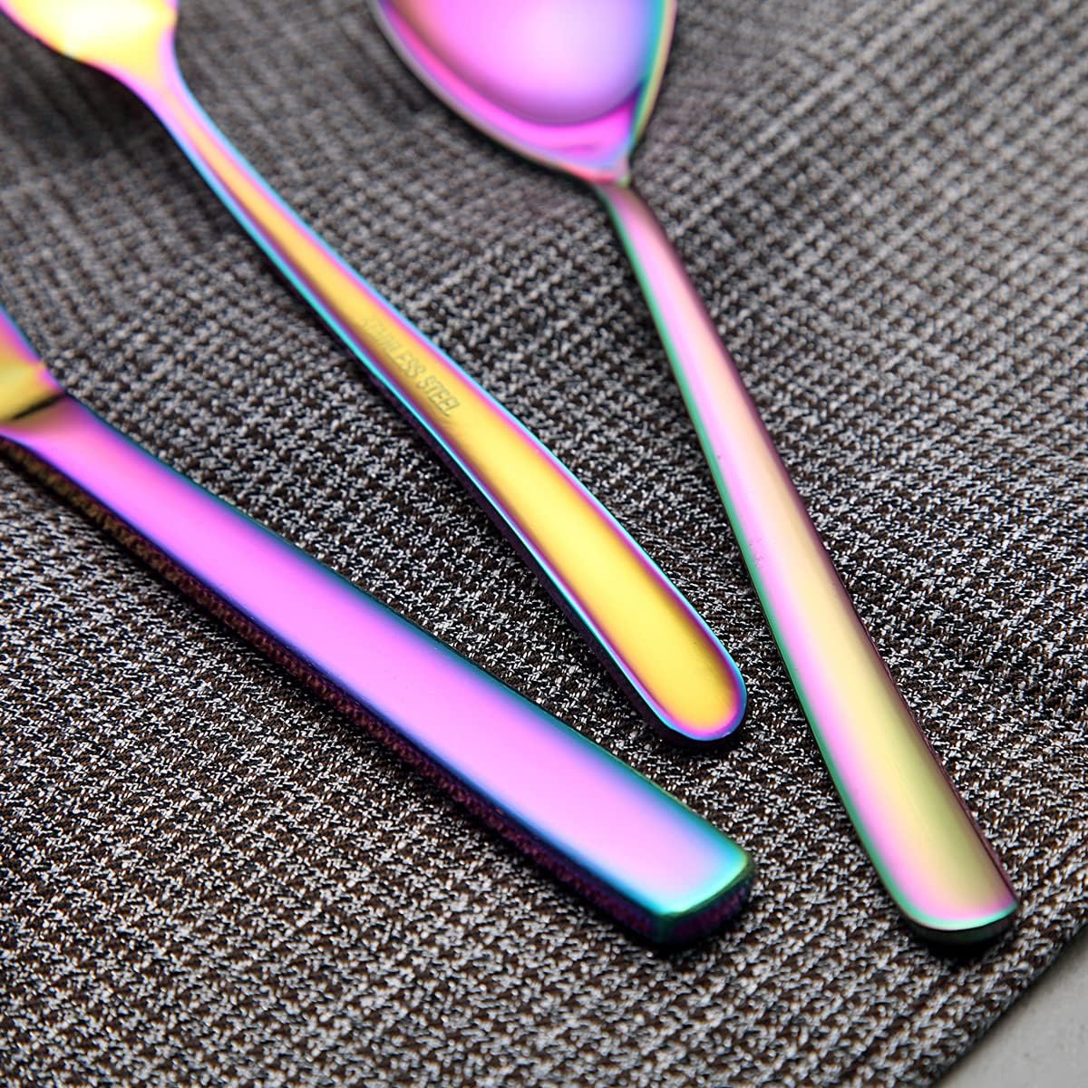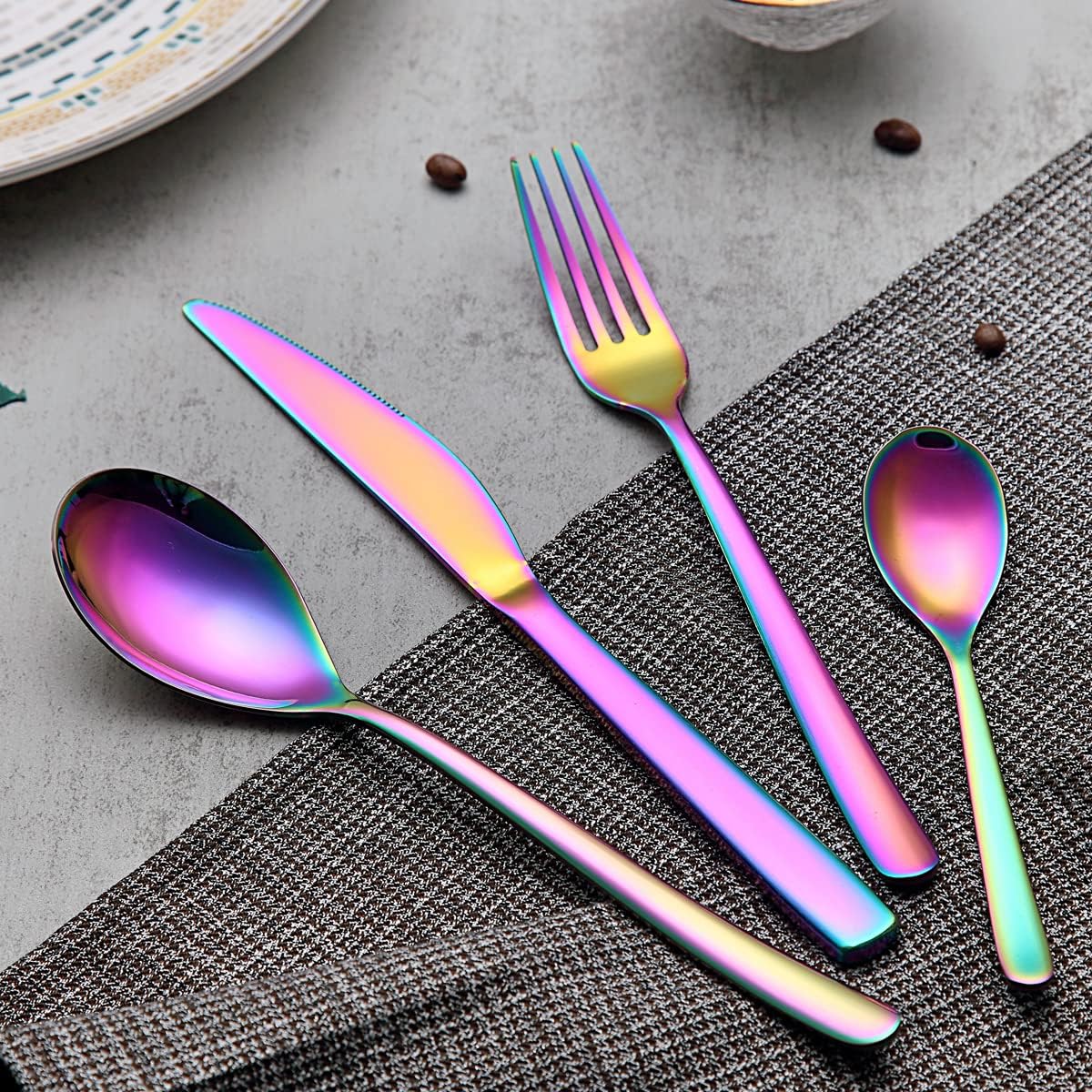 - Hochwertiges Titanium Rainbow Hochtemperatur-Vakuumplattiert, es verbessert die Oberflächenhärte, vermeidet Kratzer auf dem Besteck bei der Verwendung. Perfekt für den täglichen Gebrauch, Urlaubsessen, Party, Hochzeit, Restaurant, Hotel oder andere