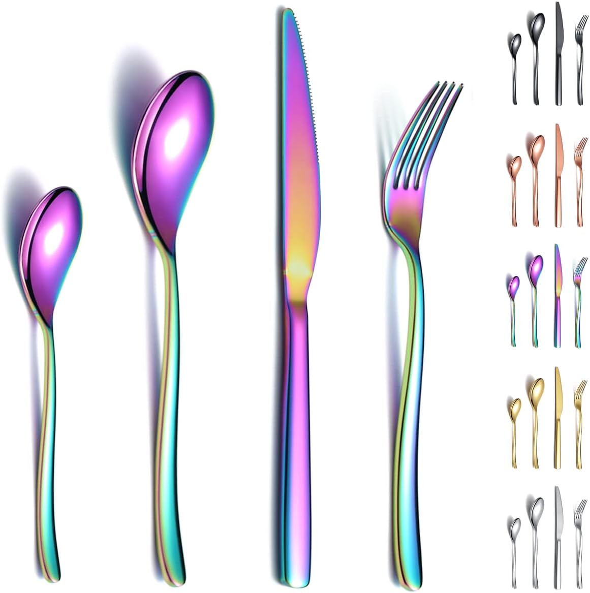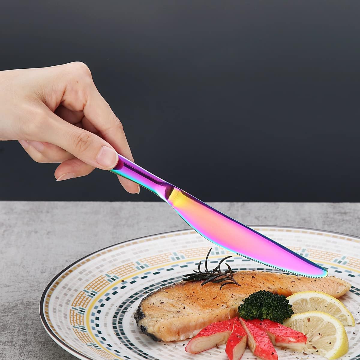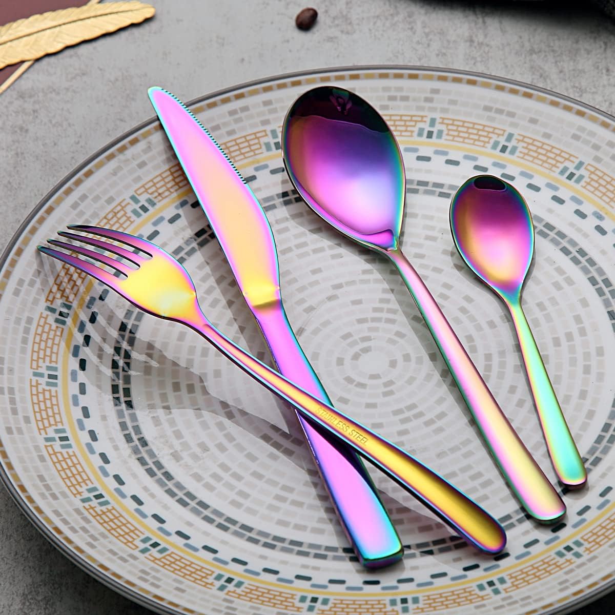 - Hochwertiges Titanium Rainbow Hochtemperatur-Vakuumplattiert, es verbessert die Oberflächenhärte, vermeidet Kratzer auf dem Besteck bei der Verwendung. Perfekt für den täglichen Gebrauch, Urlaubsessen, Party, Hochzeit, Restaurant, Hotel oder andere