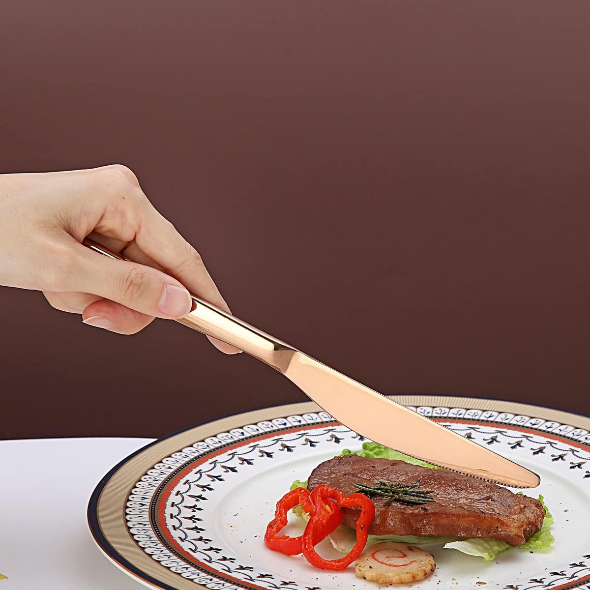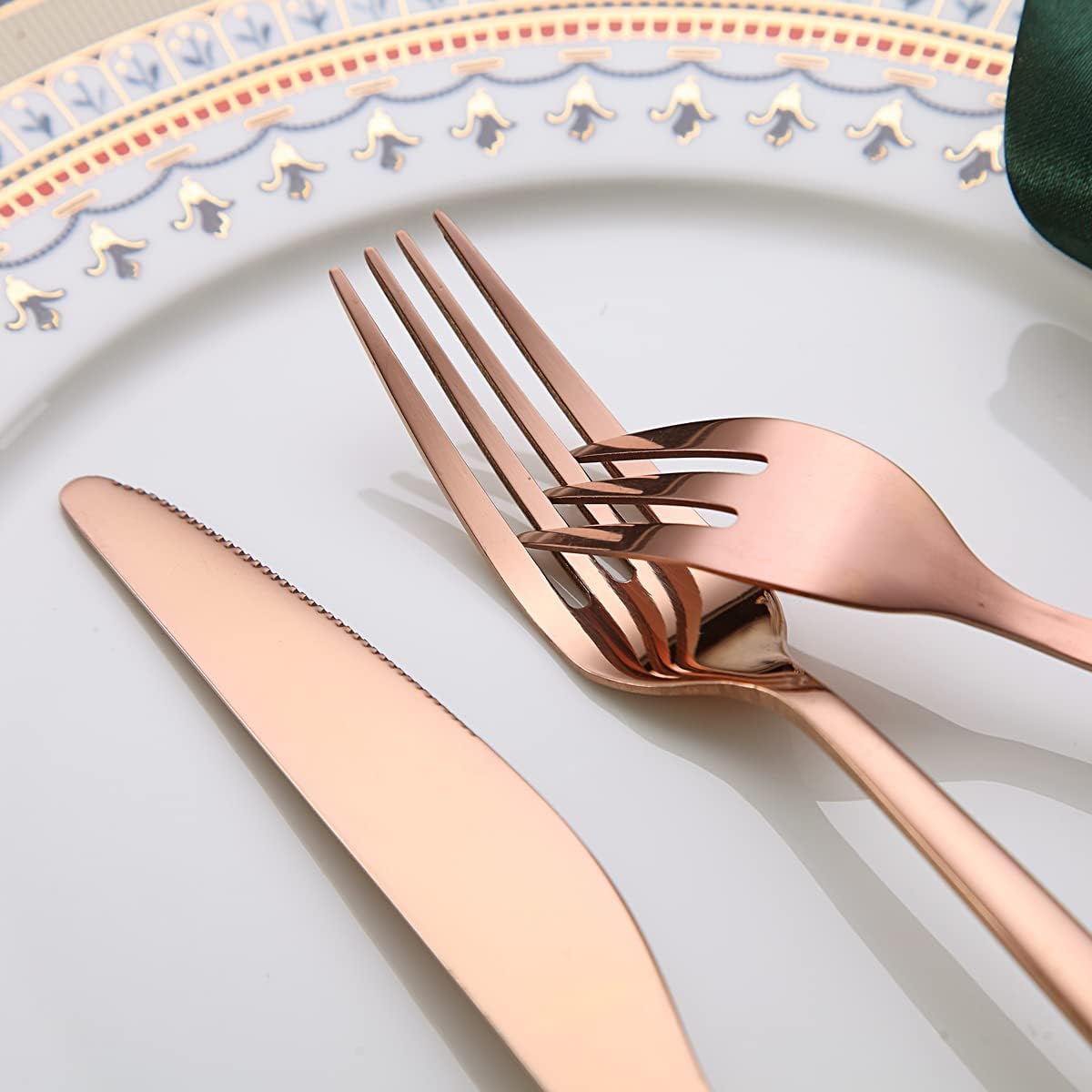 • Hochwertiges Titanium Rose Gold Hochtemperatur-Vakuumplattiert, Es verbessert die Oberflächenhärte, vermeidet Kratzer auf dem Besteck bei der Verwendung. Perfekt für den täglichen Gebrauch, Urlaubsessen, Party, Hochzeit, Restaurant, Hotel oder andere