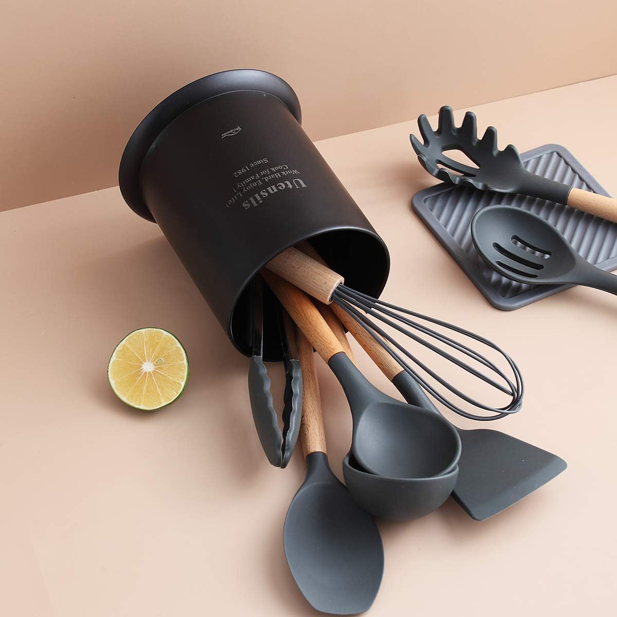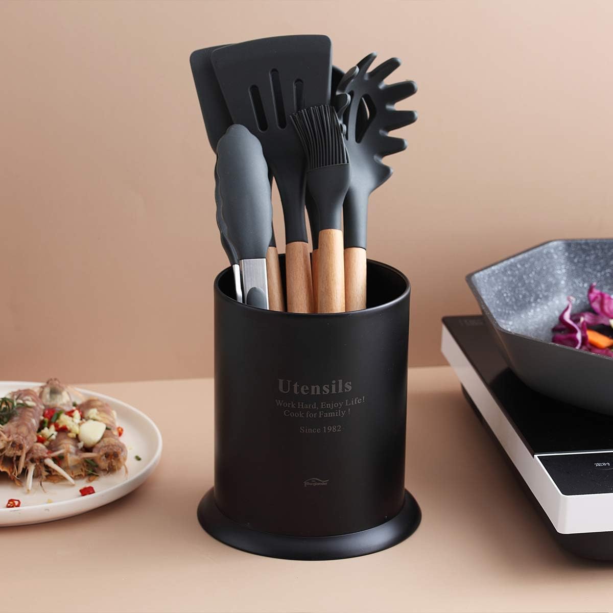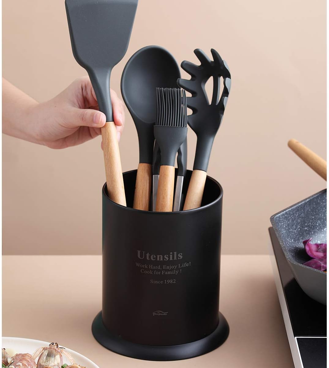 - Ideal zur Aufbewahrung aller Kochutensilien: Spatel, Löffel, Schöpflöffel, Skimmer, Zangen, Schneebesen. Halten Sie Ihre Lieblingskochutensilien auf der Arbeitsplatte zugänglich. Lässt Ihre Küche sauber und ordentlich aussehen.