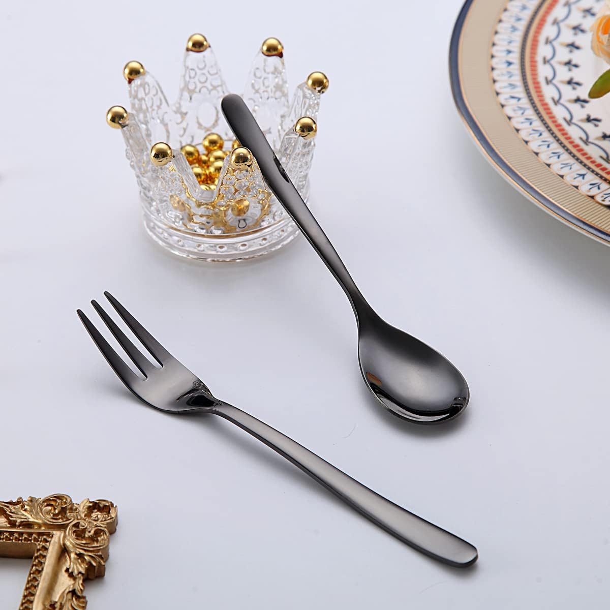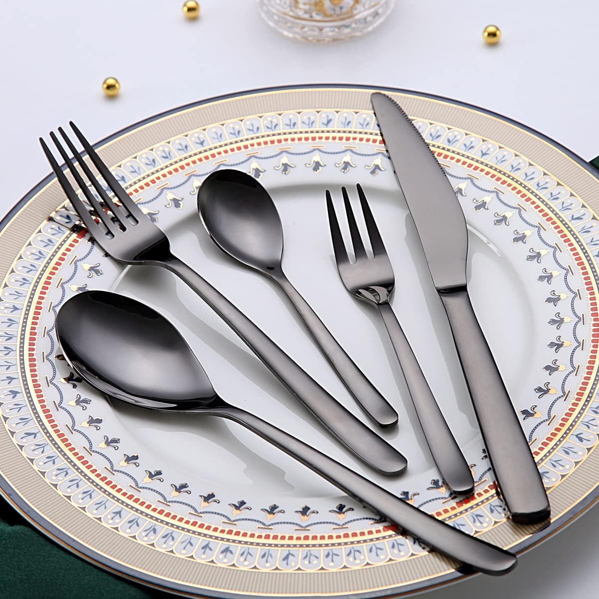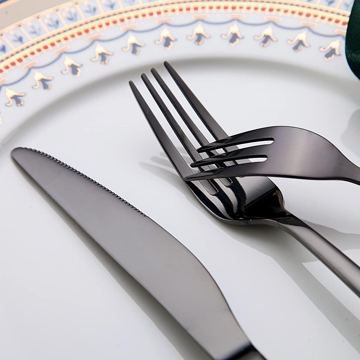 - Hochwertiges Titanium Schwarz Hochtemperatur-Vakuumplattiert, Es verbessert die Oberflächenhärte, vermeidet Kratzer auf dem Besteck bei der Verwendung. Perfekt für den täglichen Gebrauch, Urlaubsessen, Party, Hochzeit, Restaurant, Hotel oder andere formelle Anlässe. Luxus und heben Sie sich auf Ihrer Tischplatte ab.