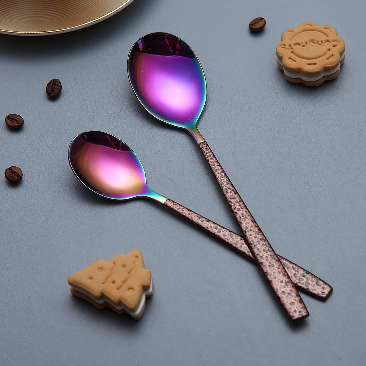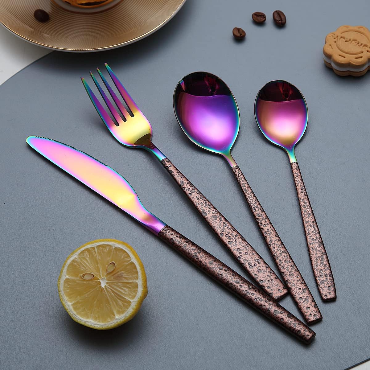 - Luxus Moon Surface Handle und Titanium Rainbow Plating Head: Hergestellt aus hochwertigem Edelstahl, stark rostfrei, bleifrei und niklefrei Gesund für den täglichen Gebrauch. Griffbehandlung mit Moon Surface Finish und Beschichtung des Kopfes mit