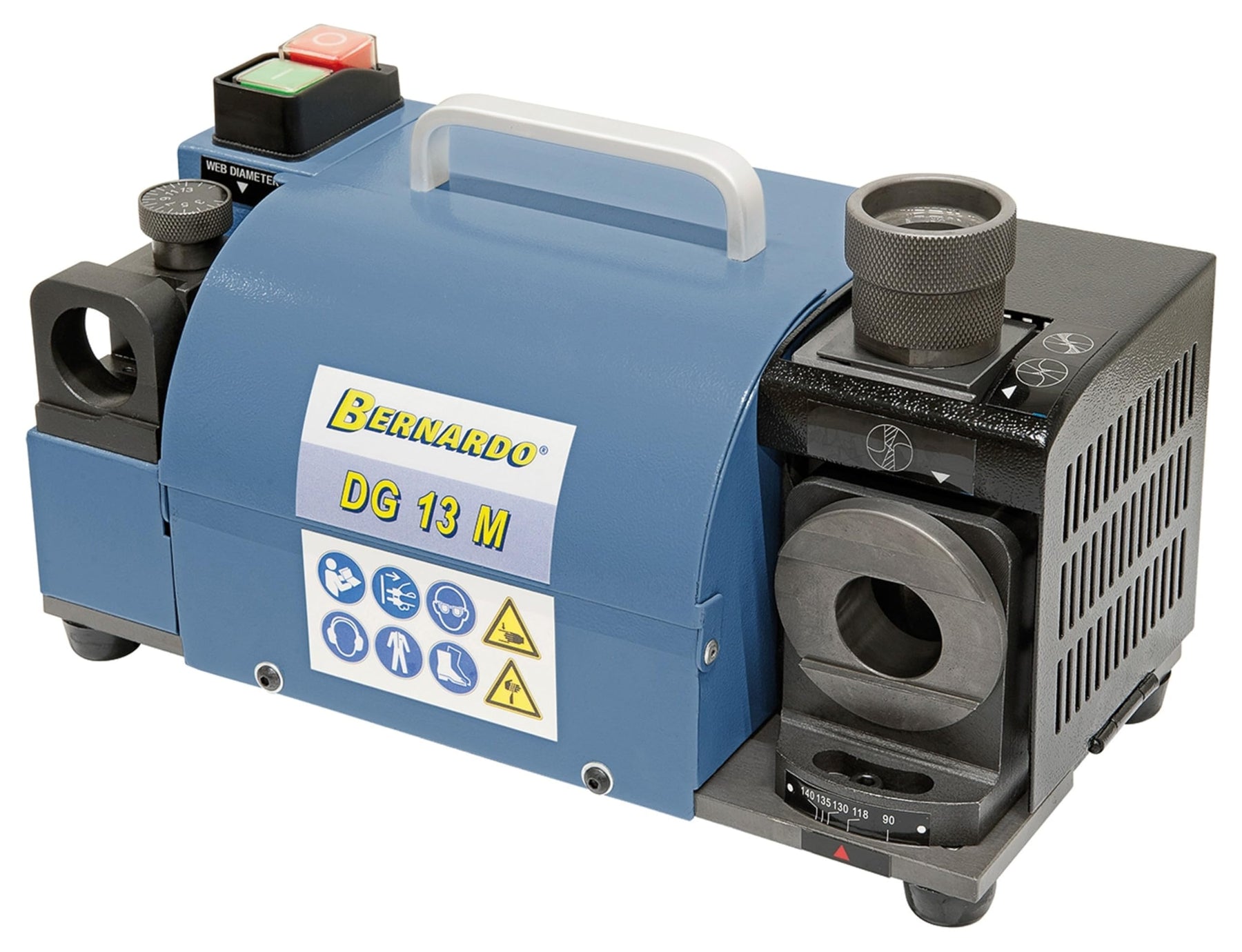 PRODUKTBESCHREIBUNGEN Die handliche Bohrerschleifmaschine DG 13 M ist ideal zum Schleifen von Spiralbohrern aus HSS und Hartmetall. Durch den einstellbaren Spitzenwinkel von 90° bis 135° ist dieses Modell universell einsetzbar für 2-schneidige Spiralbohrer. Schneller und einfacher Schleifvorgang Universell einstellbarer Spitzenwinkel von 90° - 135° Zum Schleifen von Spiralbohrern aus HSS und Hartmetall von 2 - 13 mm Inklusive Einrichtung zum Ausspitzen der Bohrerspitze Optimales Schleifergebnis durch die speziell geführte Spannzange ER20 Spannzangen ermöglichen auch das Spannen von Zwischengrössen Lieferumfang Schleifscheibe CBN Spannzangen ER 20, 3 - 13 mm, 11 Stk. (3,0 / 4,0 / 5,0 / 6,0 / 7,0 / 8,0 / 9,0 / 10,0 / 11,0 / 12,0 / 13,0 mm) Spannzangenhalter ER 20