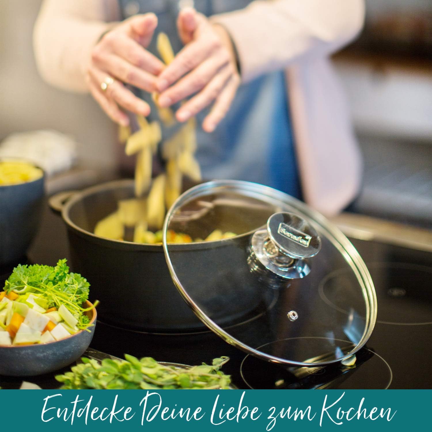 • PREMIUM INDUKTION: Das Profi Kochgeschirr ist geeignet für jegliche Herdarten. Besonders optimiert ist sie dank ihrer Premium Technologie für Induktion und bietet infolge des in Schallgeschwindigkeit aufgespritzten Edelstahlbodens eine ideale