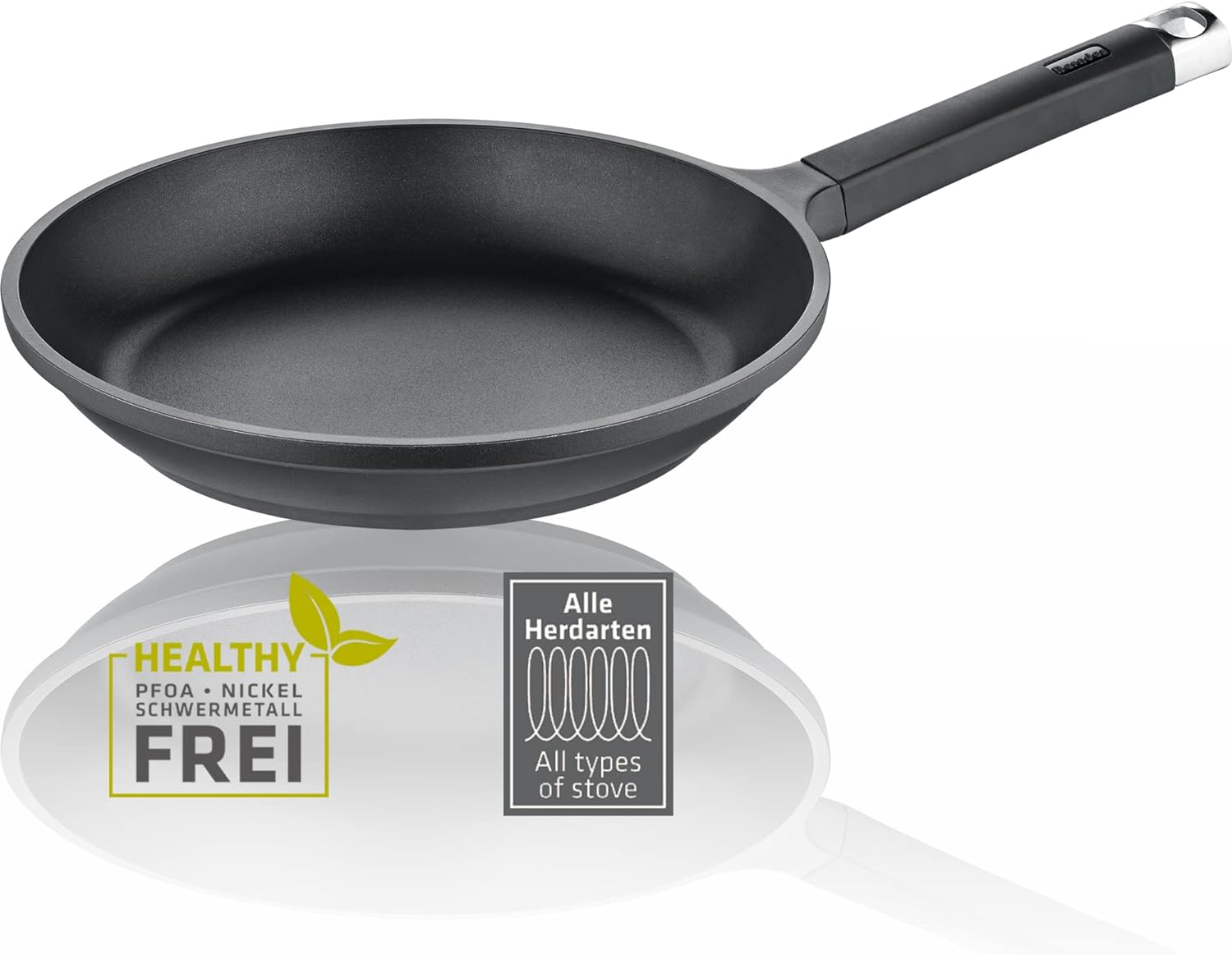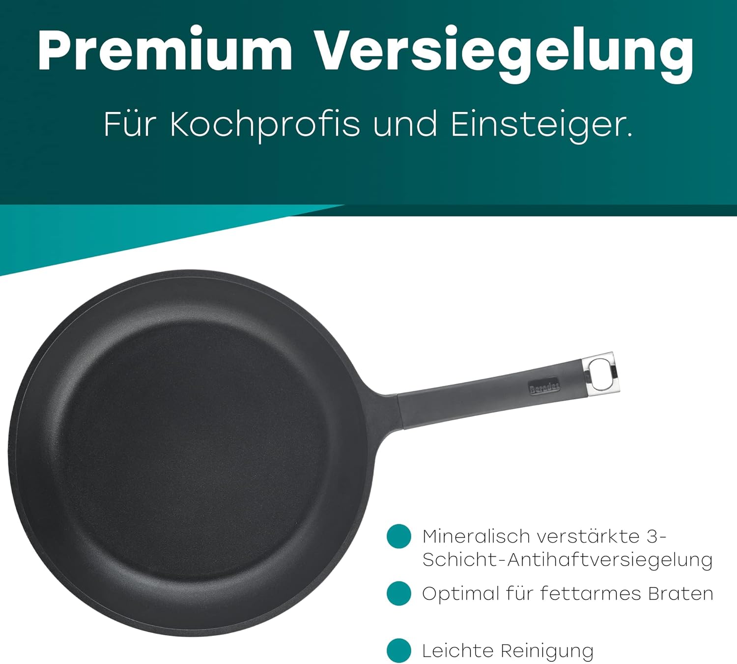 - ANTIHAFT-EFFEKT: Die mineralisch verstärkte & PFOA-freie 3-Schicht-Antihaft-Versiegelung der Aluguss-Pfanne benötigt nur wenige Tropfen Öl für die Zubereitung Ihrer Speisen und ist zudem robust gegen Kratzer.