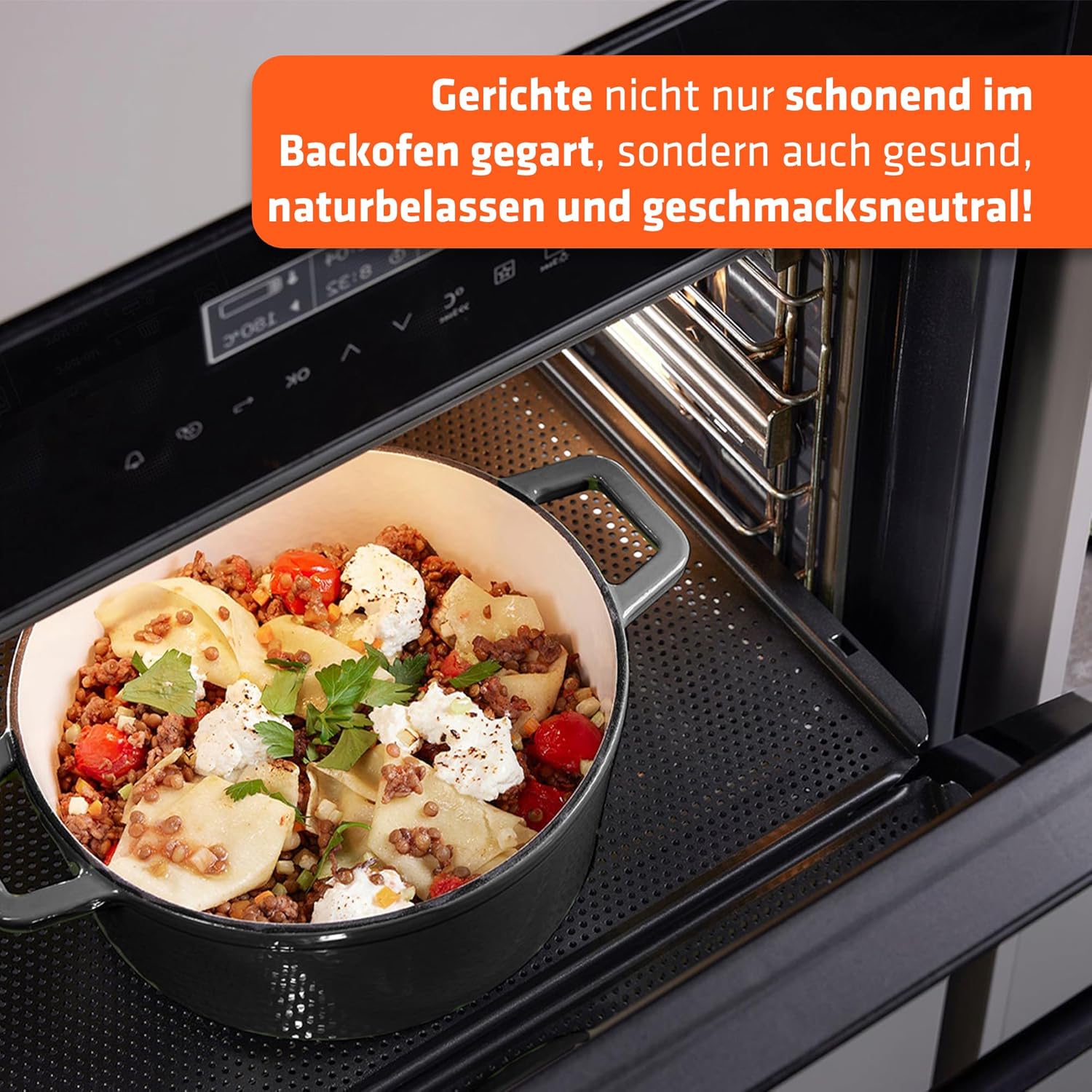 - VIELSEITIGE EINSATZMÖGLICHKEITEN: Dieser Topf ist für alle Herdarten geeignet, einschliesslich Induktion, und hält hohen Temperaturen stand, sodass er sich perfekt für den Einsatz im Ofen, Herd oder sogar Grill eignet. Perfekt für vielseitiges