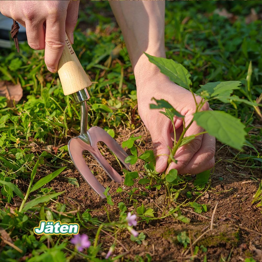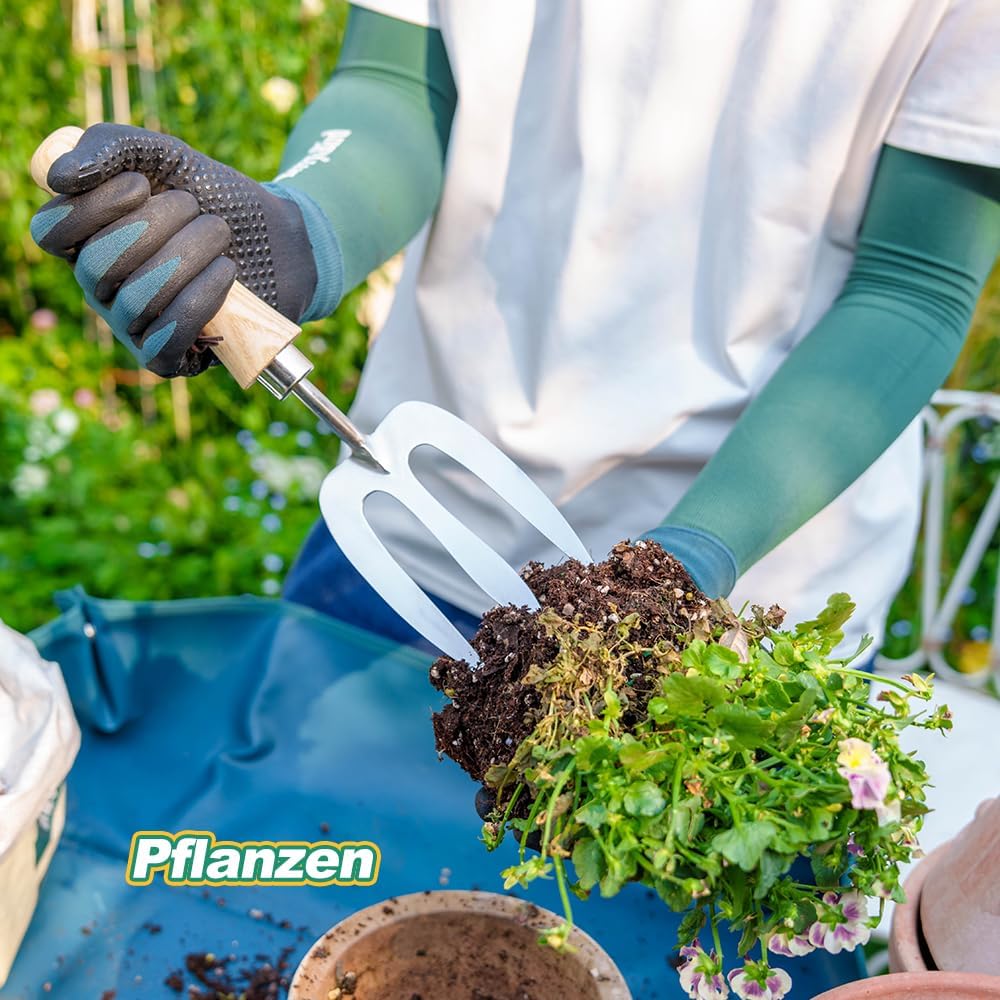 - Hochwertiges Material: Handgabel mit drei stabilen Zinken aus Edelstahl, korrosionsbeständig und langlebig. Die pflanzgabel bietet ein ausgewogenes Handling und angenehme Proportionen – ideal für Pflanzarbeiten. Ein praktisches gartenwerkzeug, das