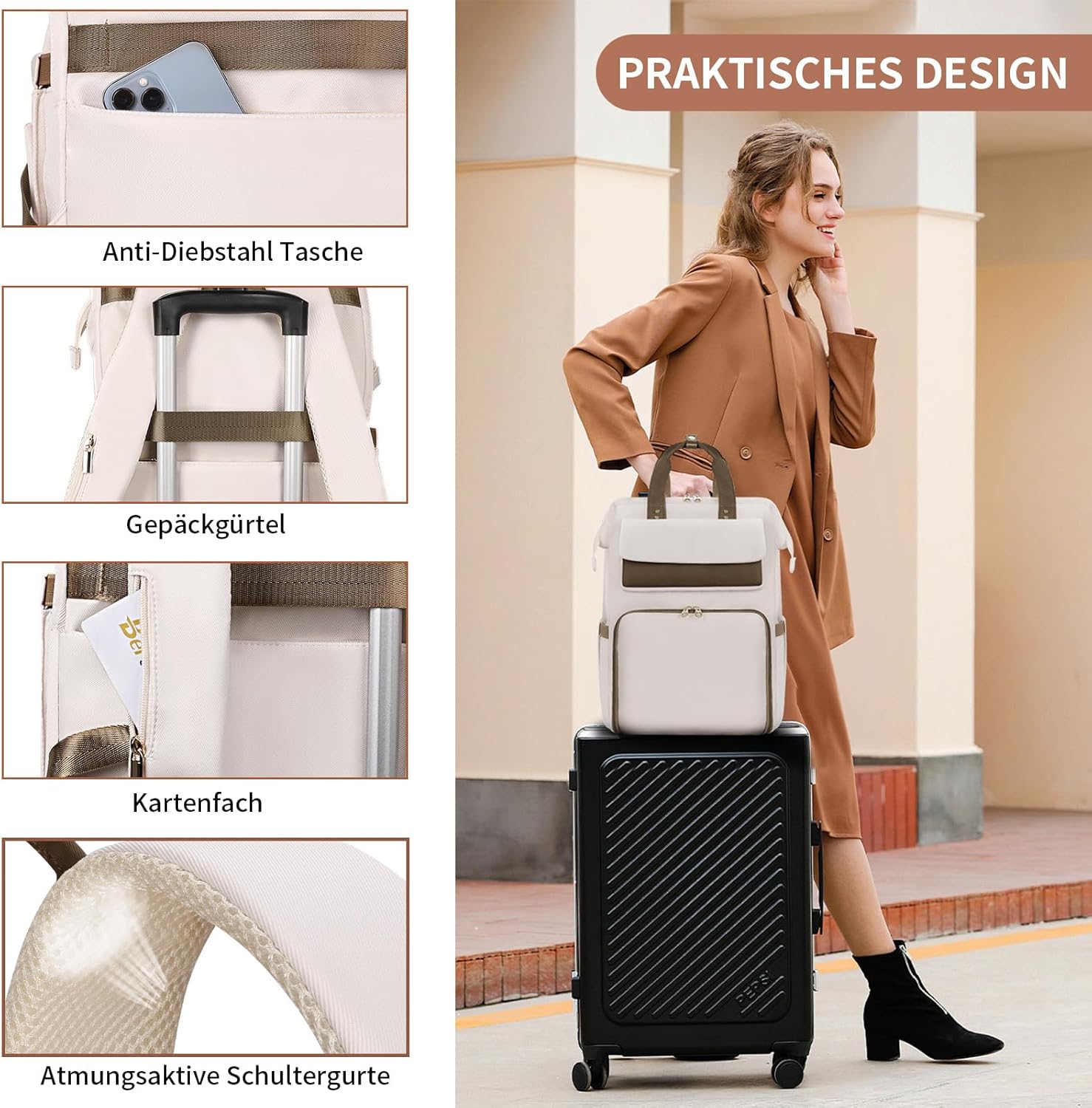 - 【15.6 Zoll Laptopfach】Business Rucksack für Damen mit 1 separaten Laptopfach für 15,6 Zoll Laptop sowie 2 A4-Papierdokumente. Das Design der vollständigen Öffnung des College Rucksacks ist praktisch, um Gegenstände aufzubewahren. Mehrere
