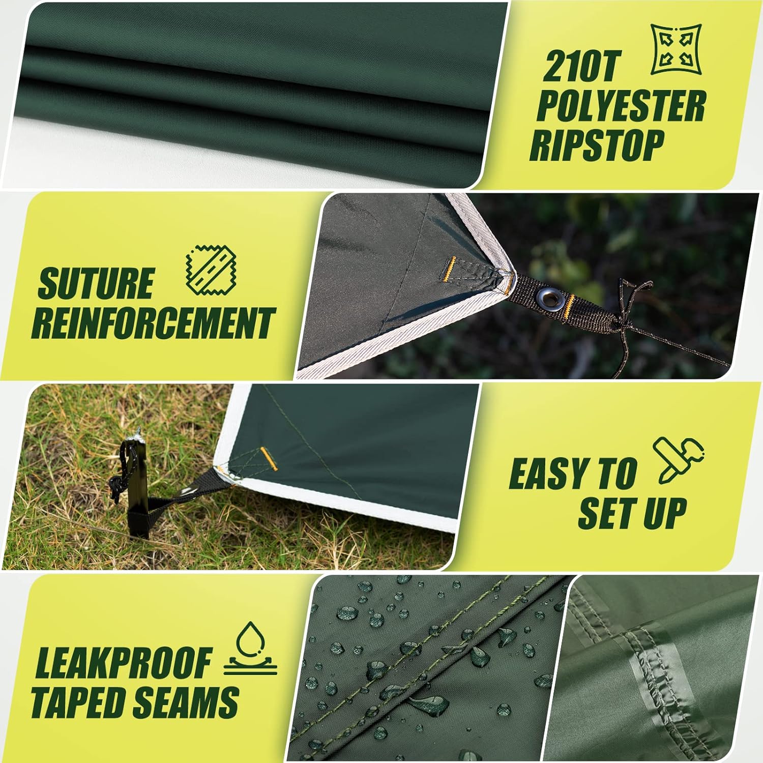 - 【STRAPAZIERFAHIGES MATERIAL】- Das Bessport tarp 210T Polyester-Ripstop Gewebe hat eine PU-Doppelbeschichtung und vollverschweisste Nähte, wodurch sie eine hydrostatische Festigkeit von 3000 mm bietet langlebige tragen mit ausgezeichneter