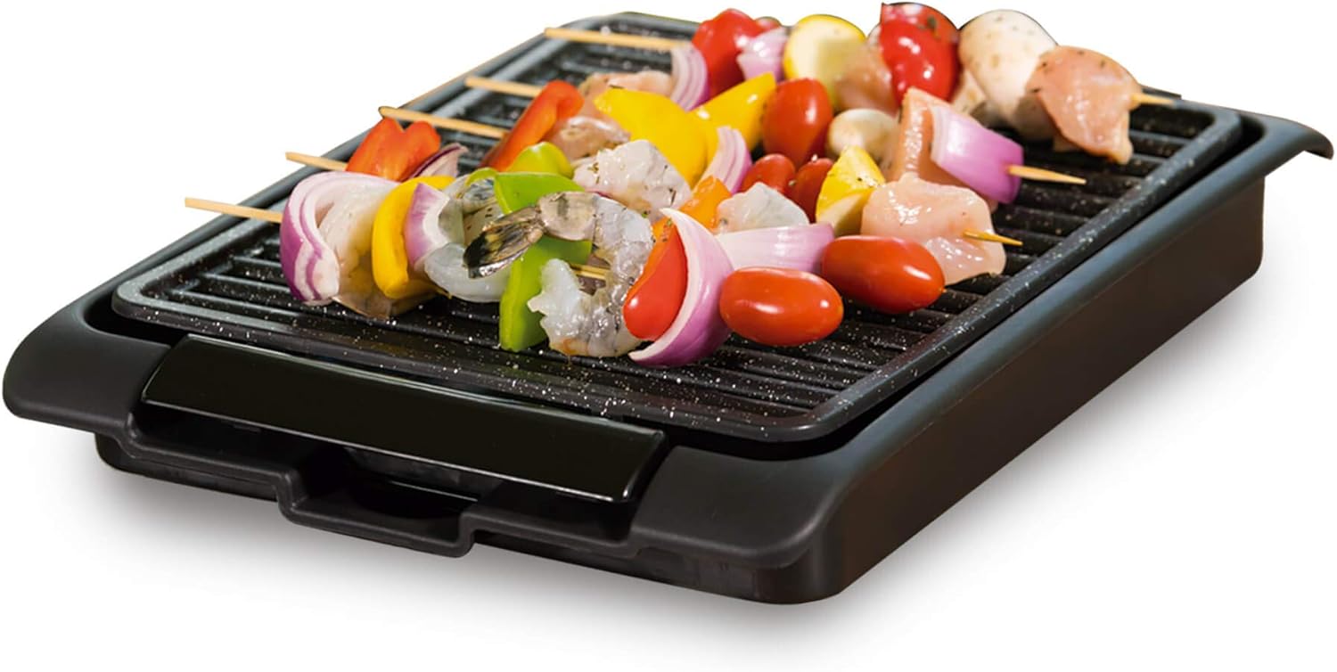 - Indoor-Grill, mit echter Sandsteinkochfläche, für besseren Geschmack und gleichmässiges Kochen. Es ist elektrisch, also gibt es keine chaotische Kohle und keinen Kraftstofftank zum Befüllen. Jetzt ist es an der Zeit, jederzeit und überall zu grillen.