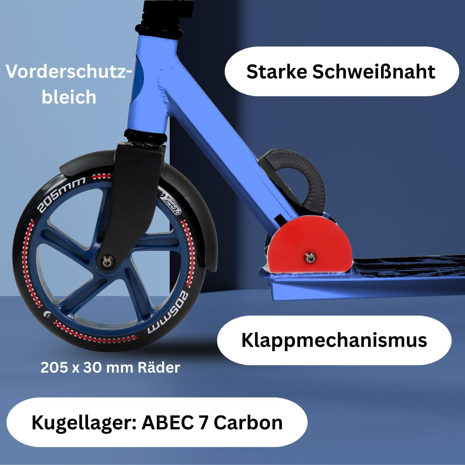 - ROBUST & STILVOLL - Der moderne Klapproller ist aus Aluminium und Stahl gefertigt, was seine Langlebigkeit garantiert – die ergonomische Lenkstange sorgt für maximalen Fahrkomfort