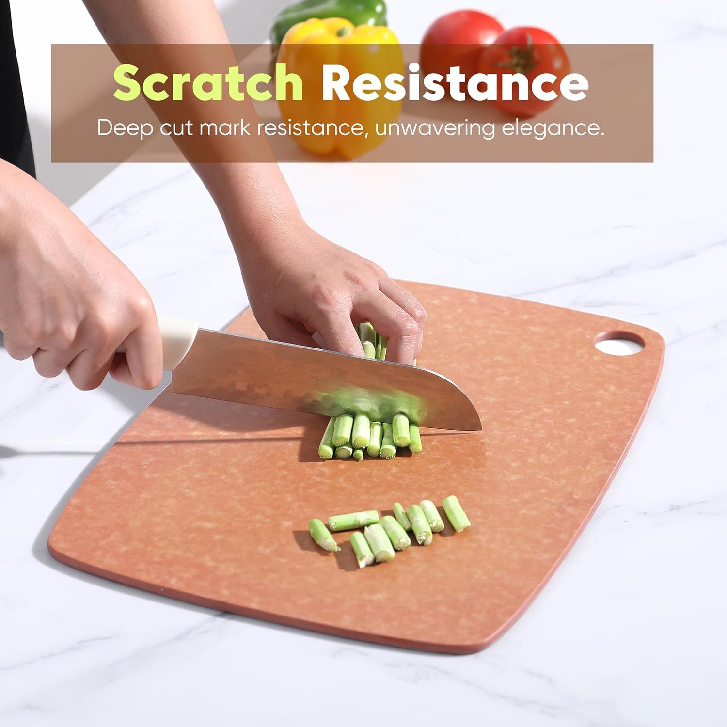 - Messerfreundlich & Hitzebeständig – Die umweltfreundliche Holzfaser-Oberfläche ist schonend zu Ihren Messern, widersteht tiefen Schnittspuren und trägt dazu bei, deren Schärfe zu erhalten. Mit einer Hitzebeständigkeit von bis zu 350°F / 183°C