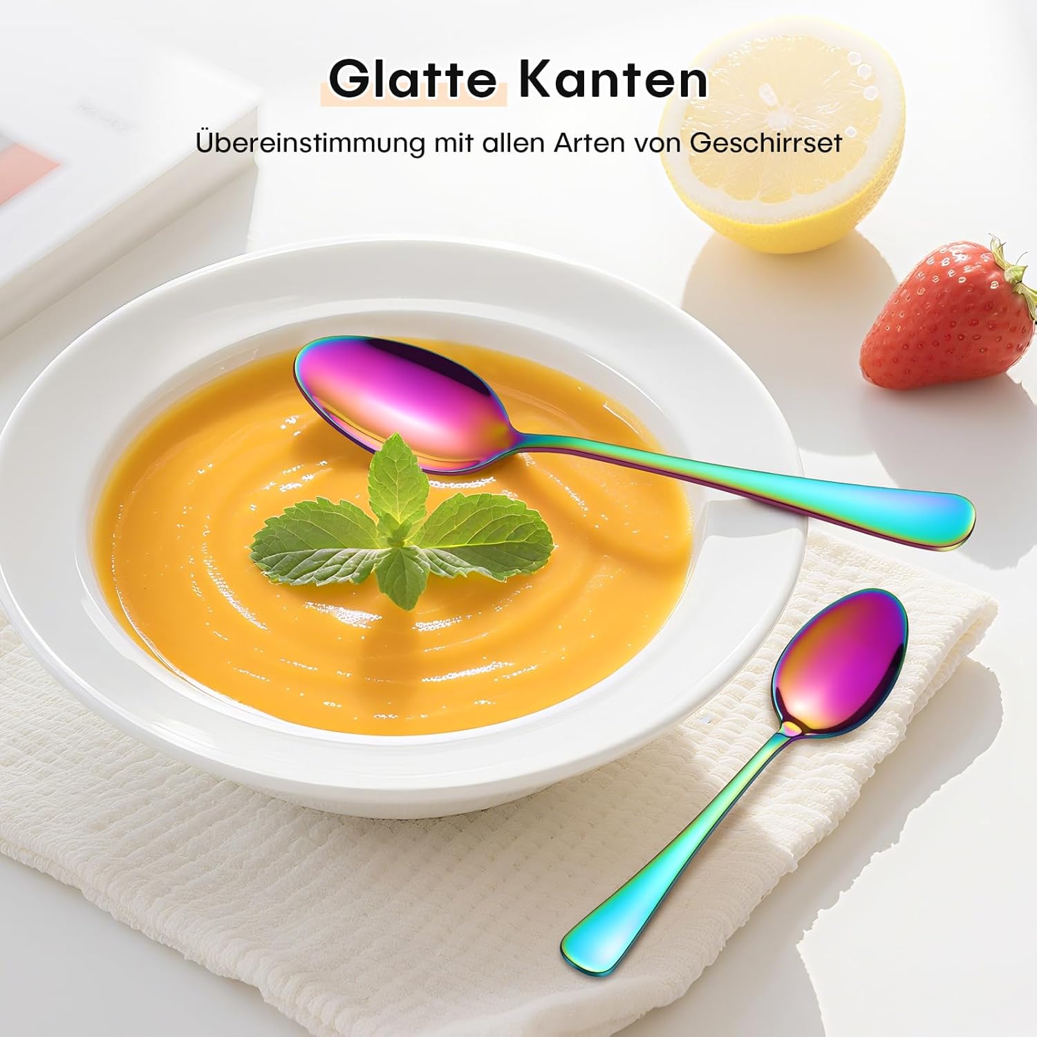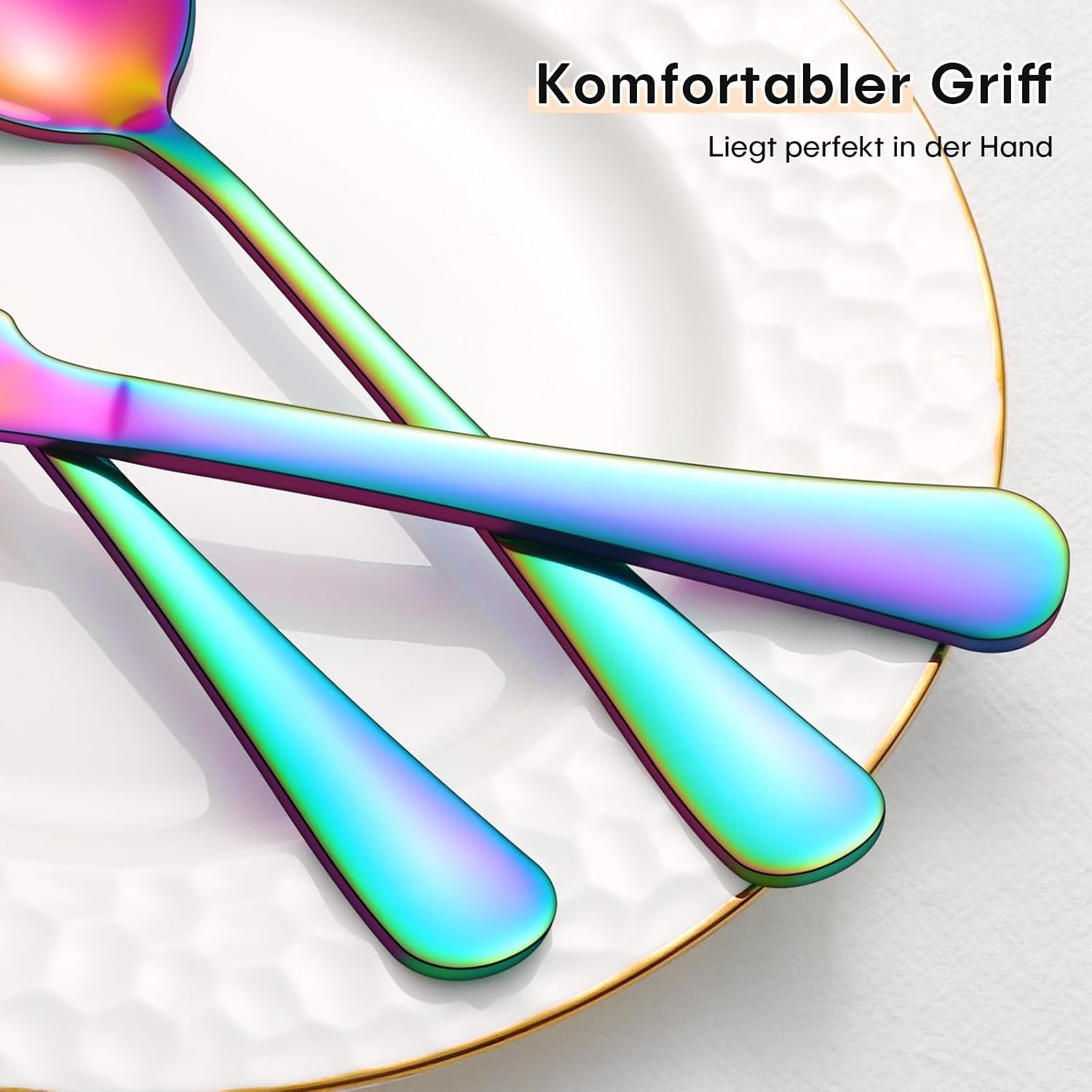 - Sorgfältige Pflege: Wischen Sie das regenbogen besteckset beim Reinigen vorsichtig mit einem weichen Tuch oder Schwamm ab. Vermeiden Sie die Verwendung von harten Gegenständen wie Stahlwolle, um Kratzer auf der Oberfläche des cutlery zu vermeiden.