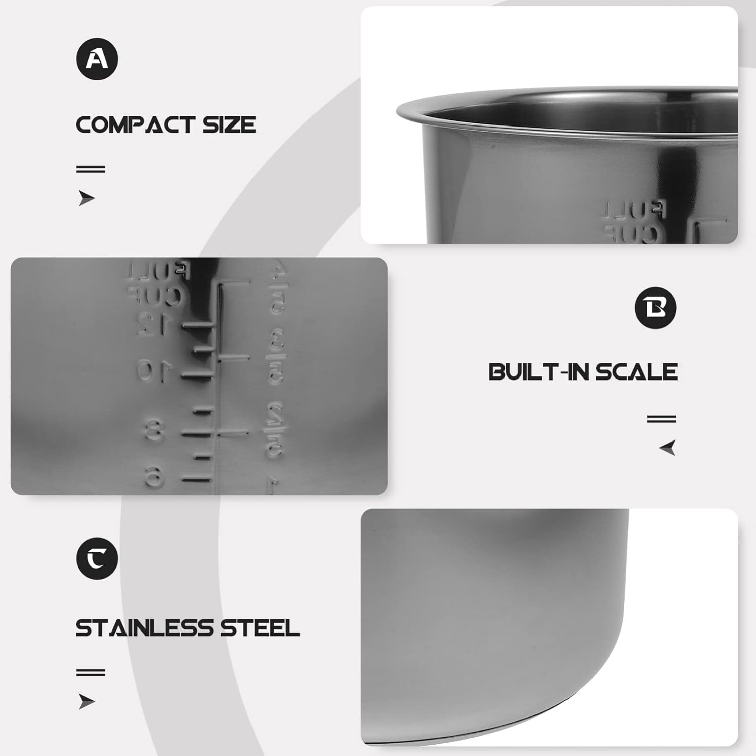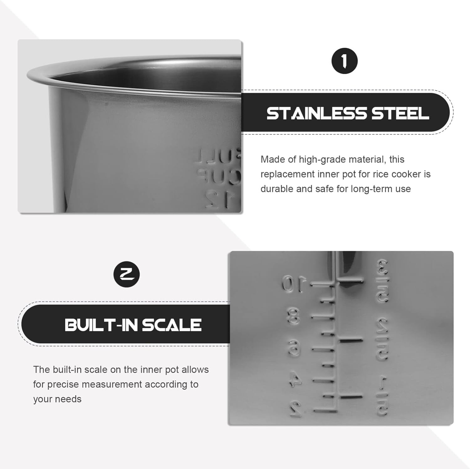 - 🍚🍚【ELEKTRISCHER REISKOCHER-Topf】Reiskocher-Innentopf, Edelstahl-Reiskocher, Ersatzeinsatz, Küchen-Reiskocher-Einsatz, Reiskochbehälter, Ersatz-Reiskocher-Zubehör. Das praktische und schlichte Design dieses Innentopfs macht ihn zu einem