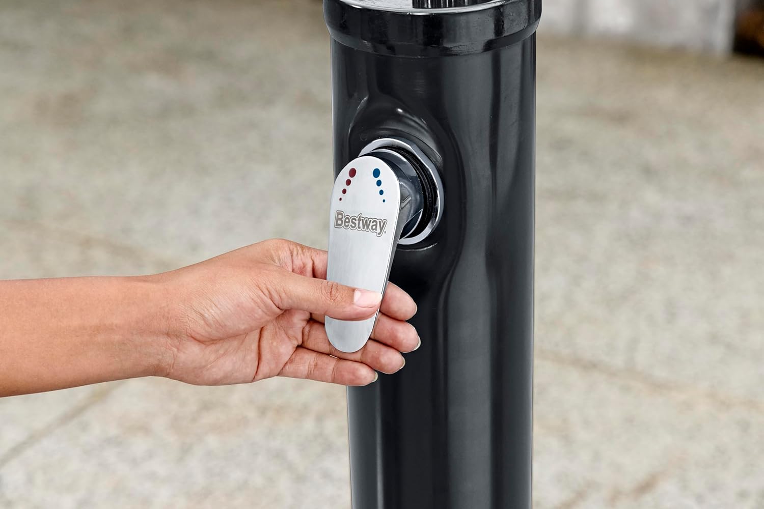 - Einfaches Einstellen der Temperatur (nach dem Erhitzen) und des Wasserdurchflusses mithilfe des Temperaturreglers Praktischer Gartenschlauchanschluss (Schlauch nicht im Lieferumfang enthalten)