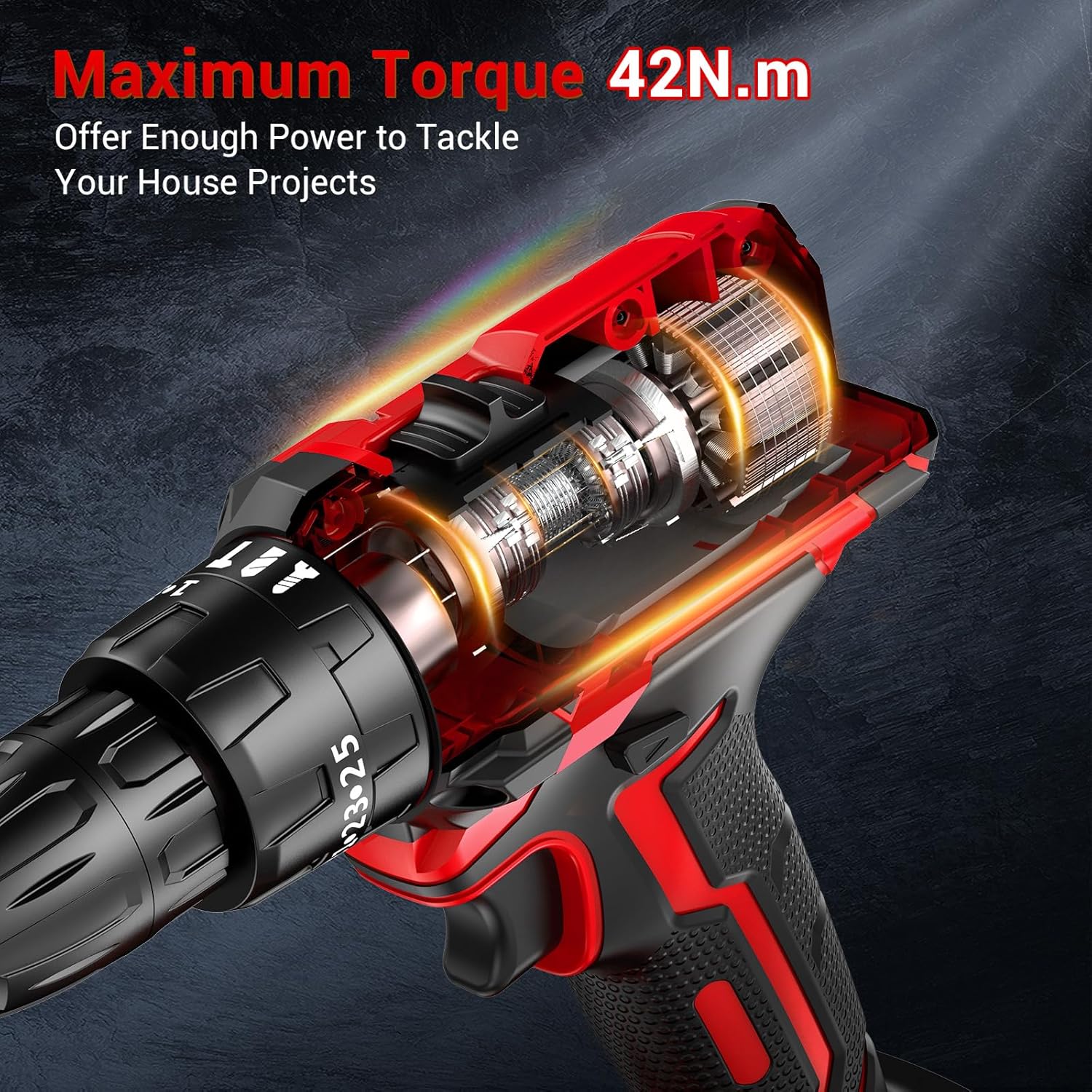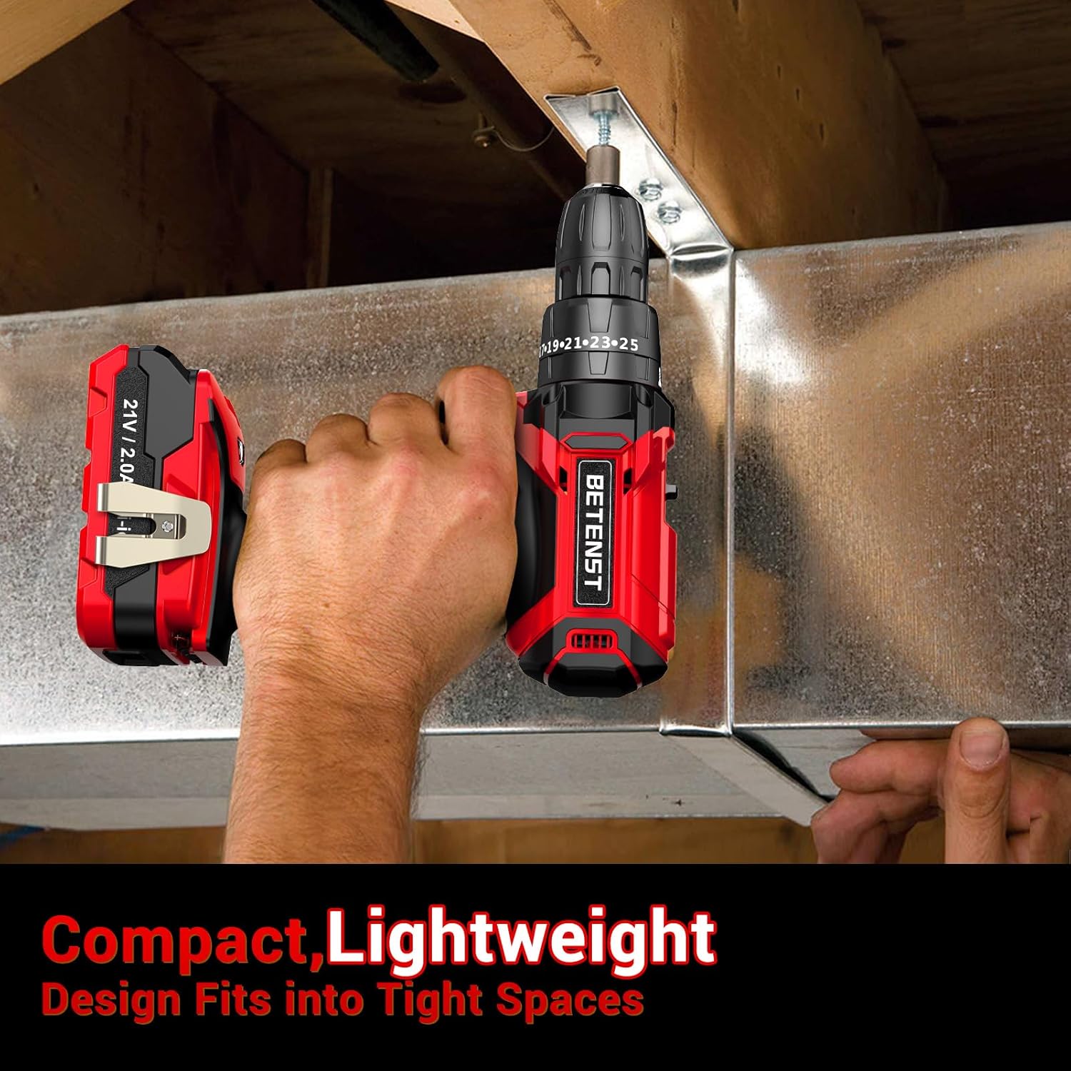 - 【3-in-1 System Bohrhammer & 42N.m Maximales Drehmoment】BETENST Akkuschrauber verfügt über 3 Arbeitsmodi-Schrauben, Bohren und Hammerbohren. Mit einem maximalen Drehmoment von 42 Nm kann der Kombibohrer problemlos Löcher bohren und Schrauben in