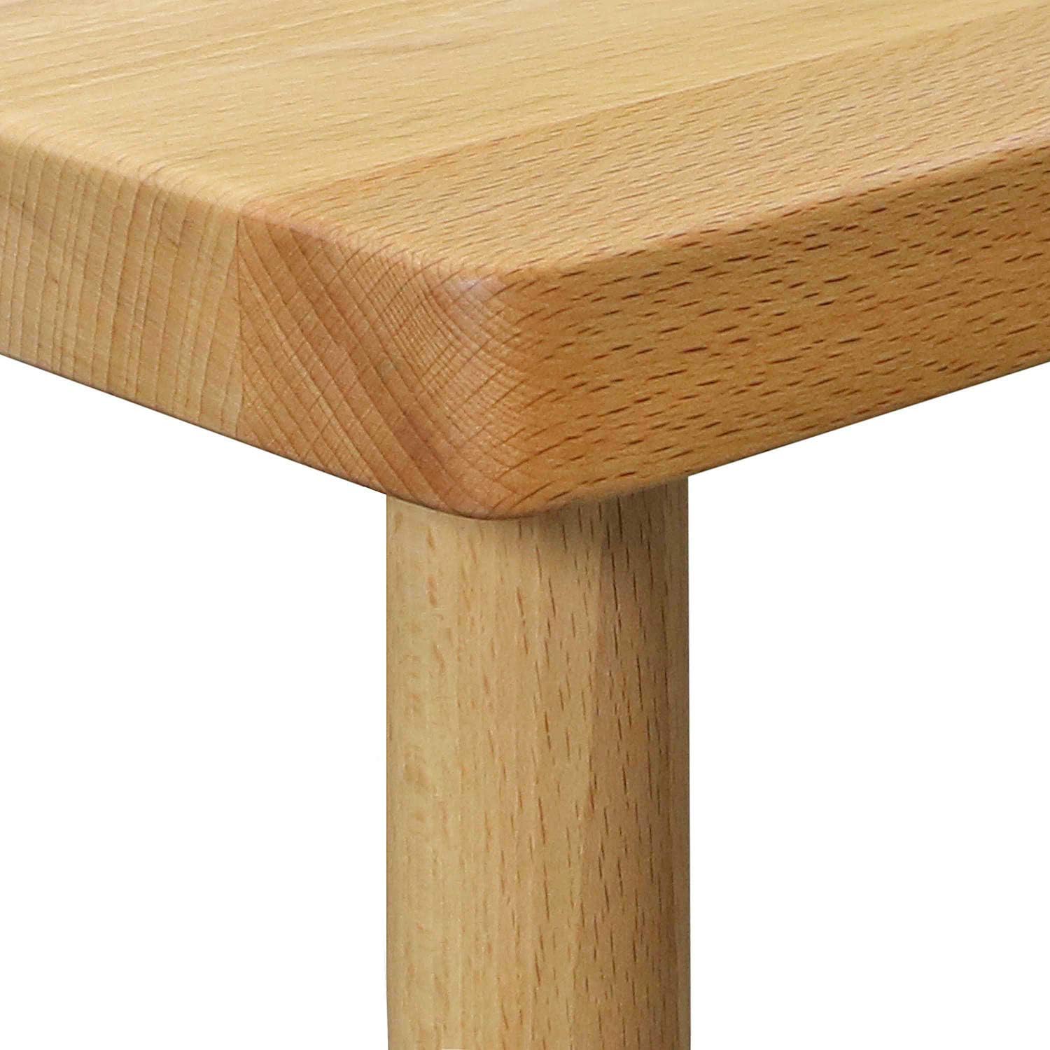 - BELASTBAR: Dank der ausschliesslichen Verwendung von massivem Buchenholz (Hartholz) ist nicht nur die Oberfläche unempfindlich und stossfest, der Tisch hält auch grösserer Belastung problemlos stand.