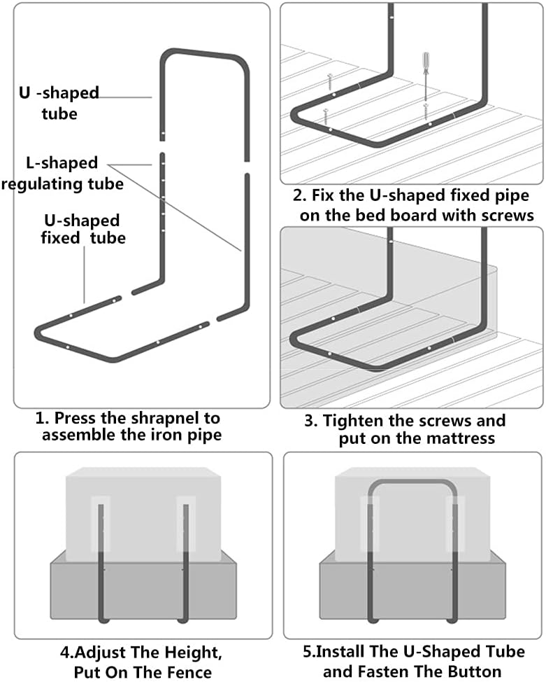 • ✔ 【Einstellbar】Die Höhe des Ständers ist verstellbar. Es ist für Matratzen von 5-30 cm geeignet. Sie können die Höhe der Unterlage je nach Dicke der Matratze anpassen. Die fünfstufige Höhenverstellung beseitigt den Spalt zwischen Bettgitter