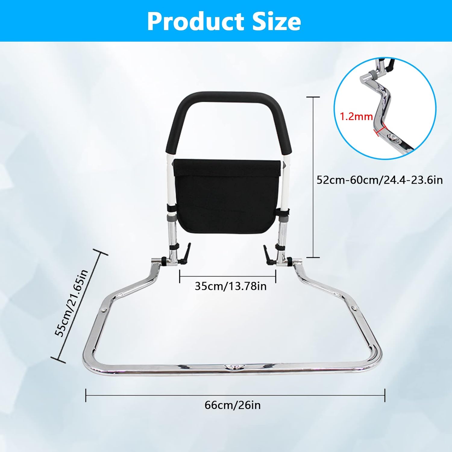- ★ 【SAFETY GUARD RAIL MIT EINSTELLbarer HOHE】Die Höhe kann von 52CM bis 60CM eingestellt werden. Entworfen, um unter Matratzen zu gleiten. Jede Bettassistenzstange ist höhenverstellbar und kann mit Latten- oder Schlittenbetten verwendet werden.