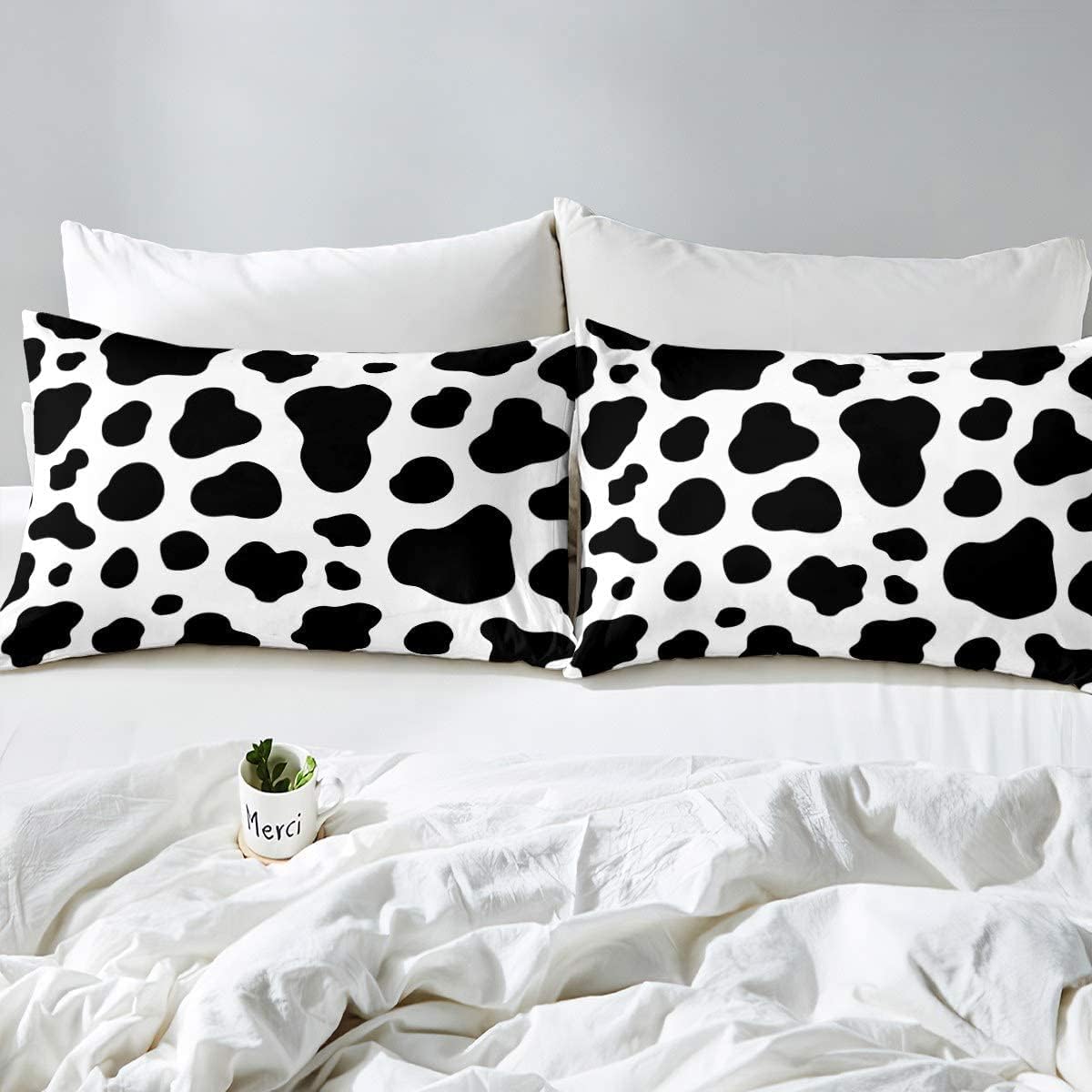 Bettwäsche-Set, Motiv Kuh, bedruckt, 200 x 200 cm, einfach, modern, abstrakt, Tiermotiv, Schwarz und
