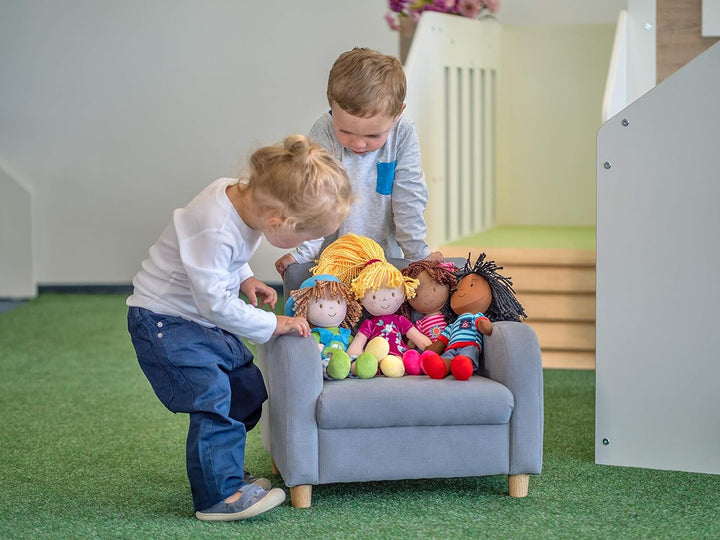 - WEICHE KUSCHEL-PUPPEN IM NIEDLICHEN DESIGN: Diese 4 kuscheligen Stoff-Puppen werden sofort ins Herz geschlossen. Sie sind anschmiegsam, weich und gleichzeitig fest wattiert, wodurch sie perfekt geeignet sind für den turbulenten Kinder-Alltag.