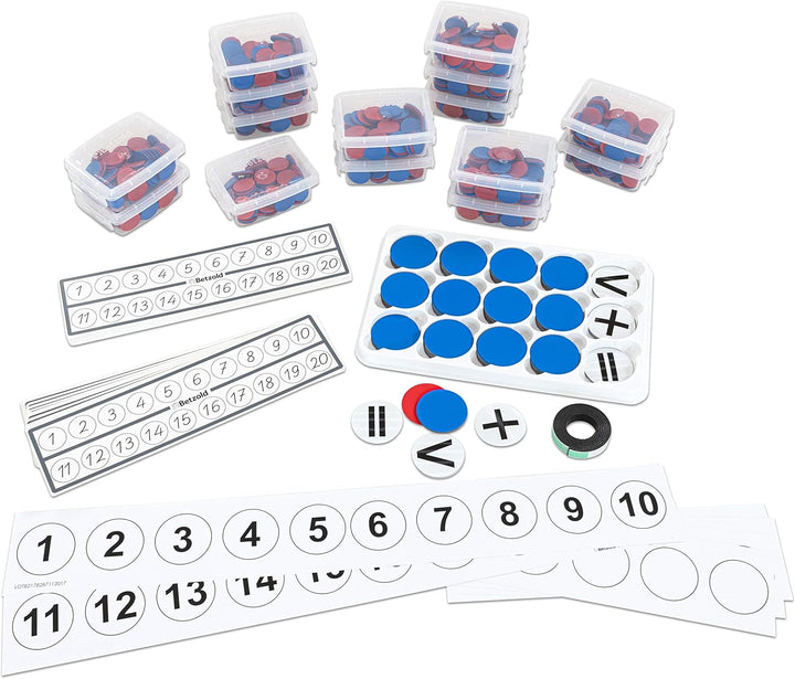 - LEHRMATERIAL FÜR 30 SCHÜLER: Das Rechen-Set beinhaltet 15 Kunststoffbehälter mit je 50 Wendeplättchen und 30 Schüler-Rechenleisten - genug für eine ganze Klasse.