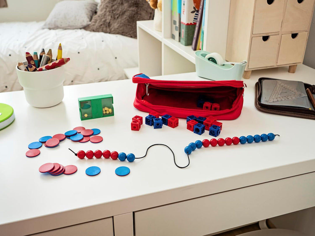- EFFEKTIVE LERN-HILFE: Im Schulsachen-Set sind die Materialien für das erste Schuljahr enthalten. Die Rechenkette unterstützt neben dem Steckwürfel und den Wendeplättchen beim Zählen und Rechnen.