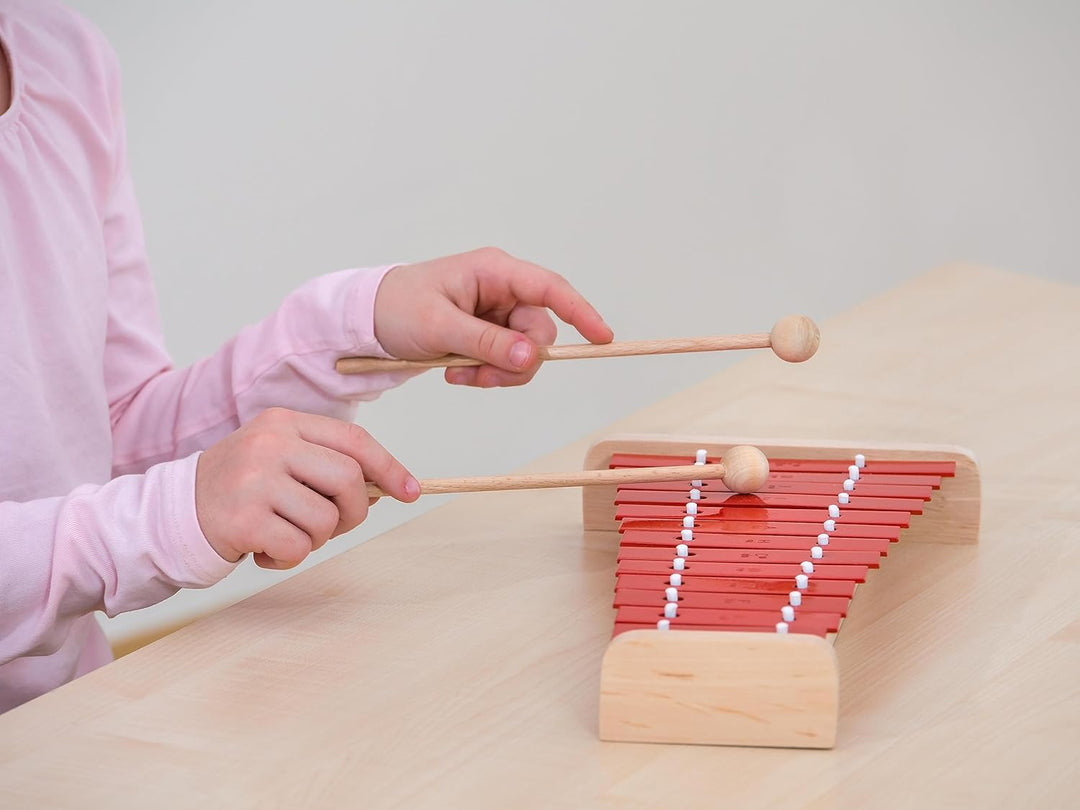 - DETAILS: Mit 21 cm langen Holzschlägeln und Aufbewahrung im Resonanzkasten, ist unser Glockenspiel gut durchdacht und praktisch.
