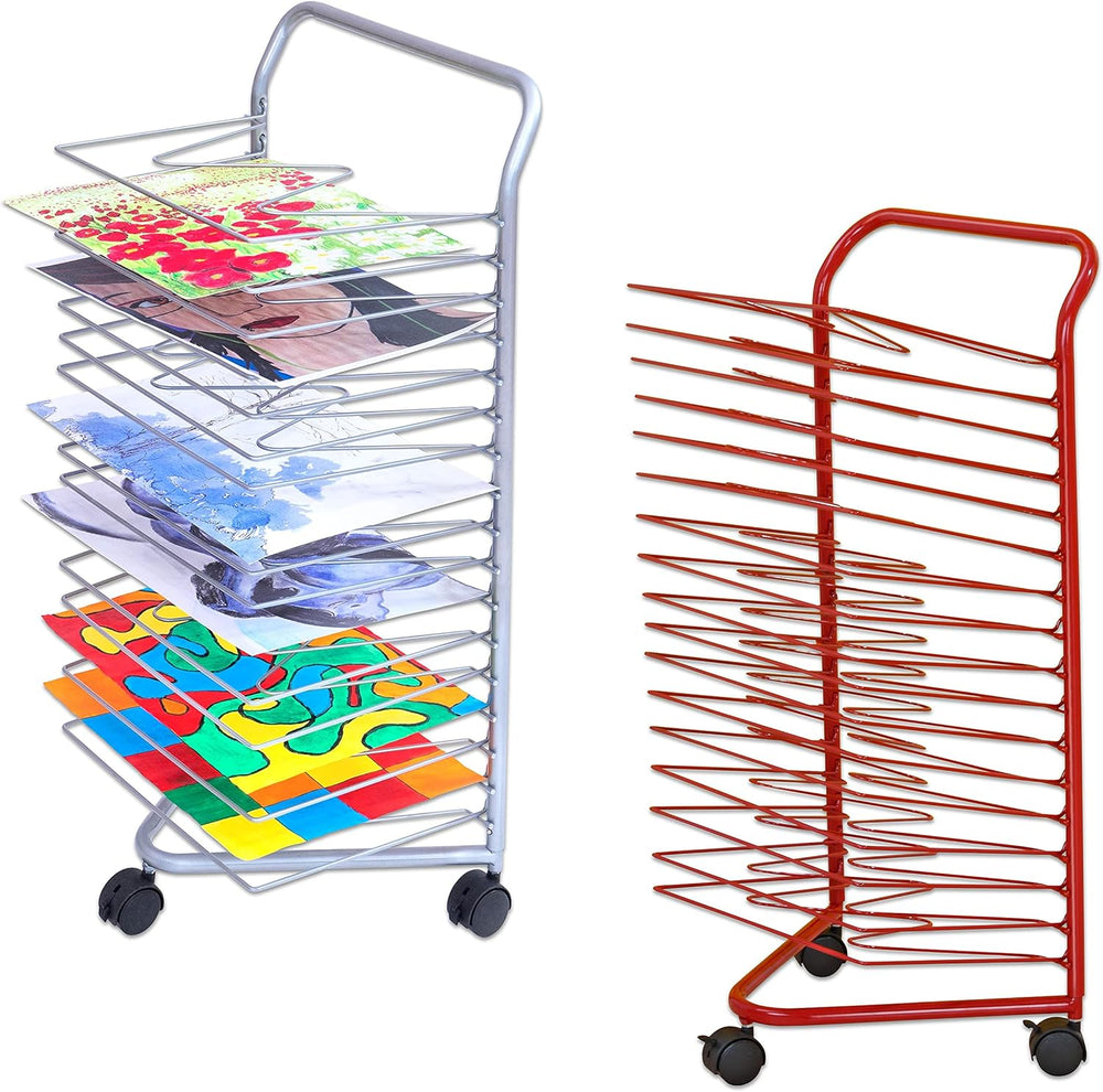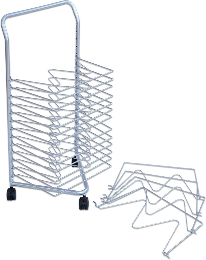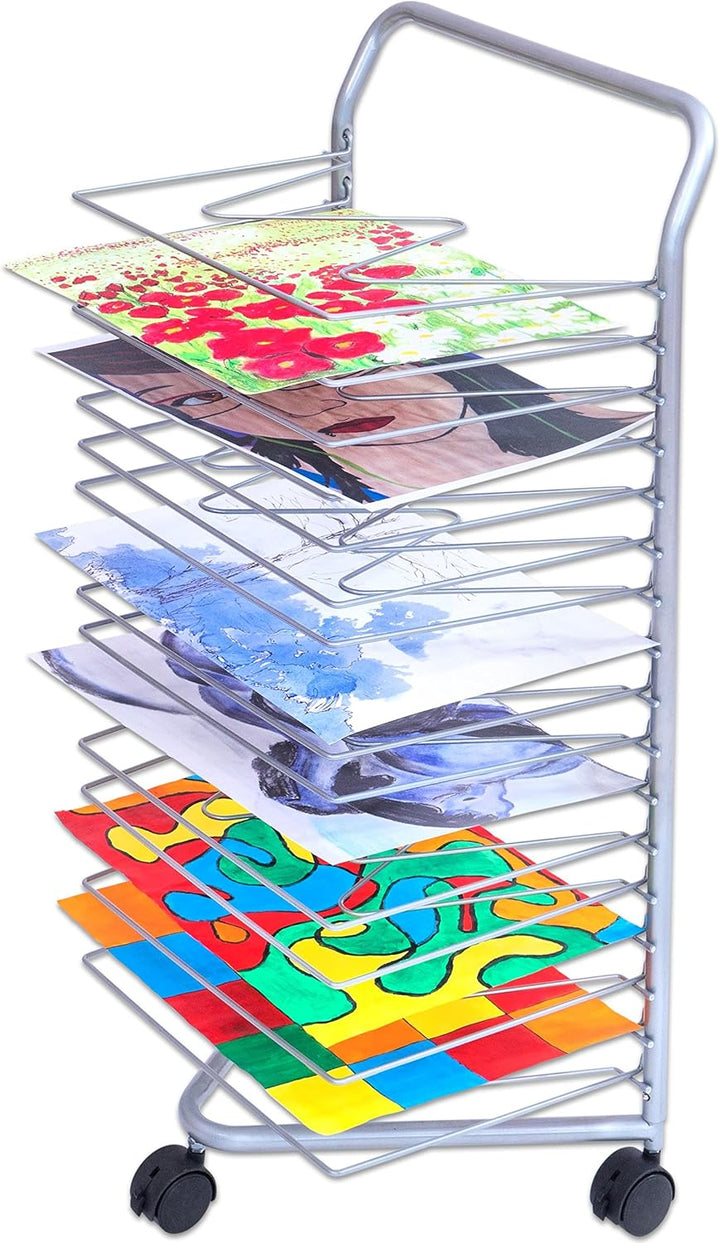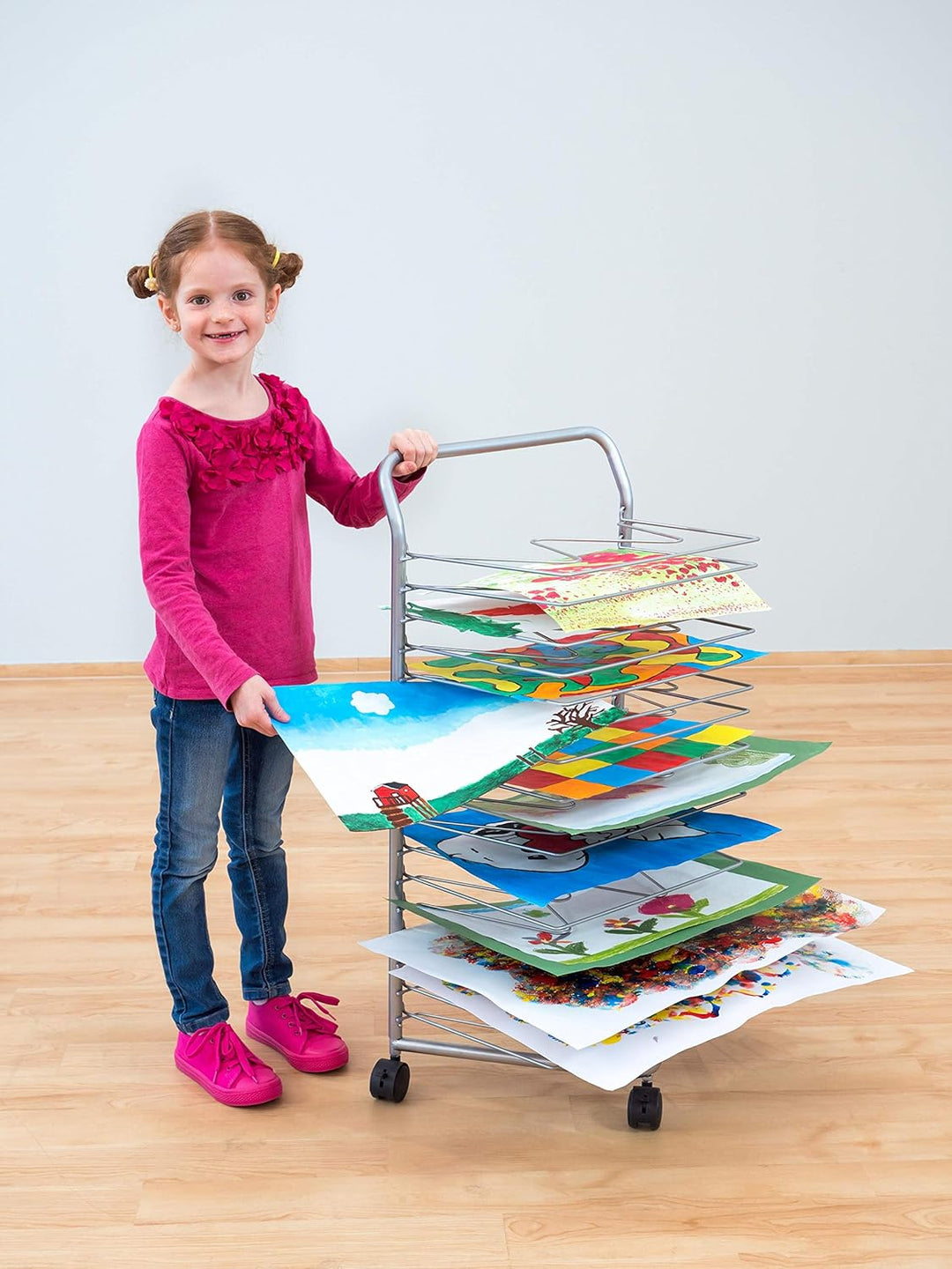 - PAPIER-TROCKNUNGSWAGEN FÜR VERSCHIEDENE FORMATE: Auf dem Trocknungs-Gestell können Werke bis Format DIN A3 und 17 DIN A3 Bilder zeitgleich getrocknet werden. Perfekt für den Kunst-Bedarf im Kindergarten.