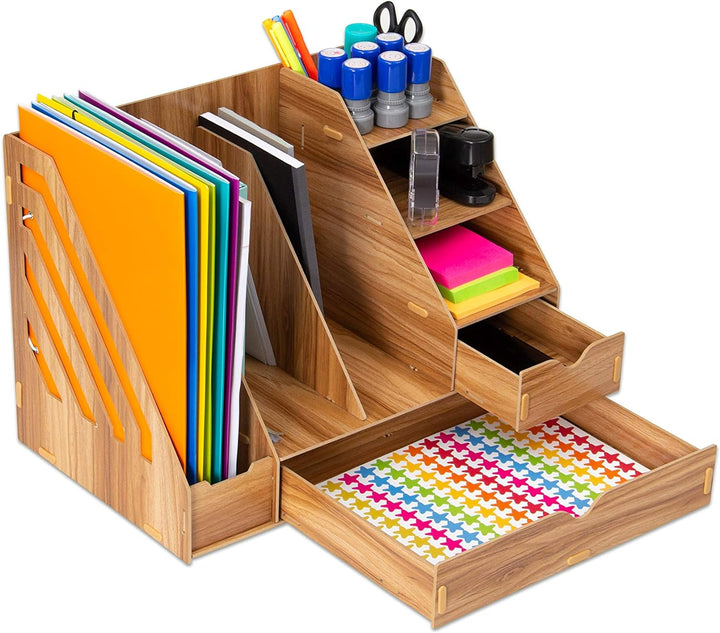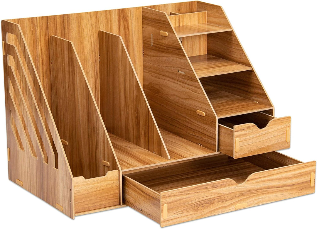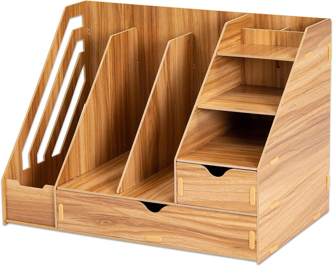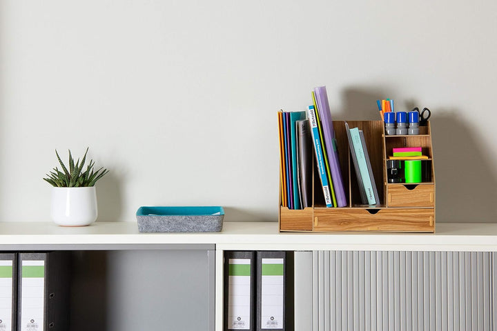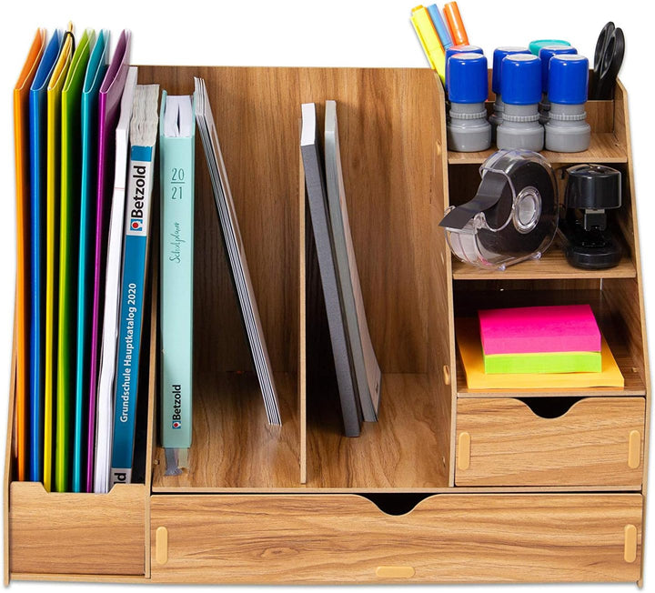 - STANDFESTER SCHREIBTISCH-ORGANIZER: Dank des robusten Materials aus MDF mit Holzmaserung sorgt der Organizer für eine sichere und standfeste Aufbewahrung Ihrer Büroutensilien, Unterlagen, Stempel u.ä.