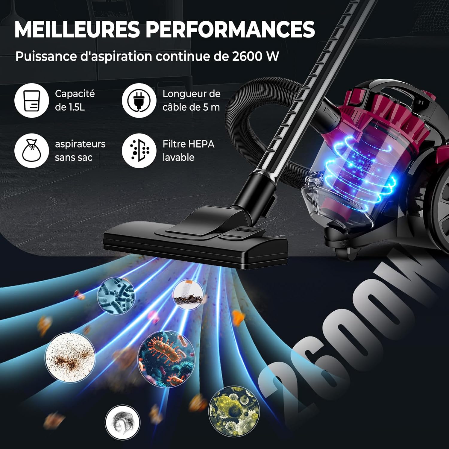 - 【Schnelle und bequeme Reinigung】 Dieser Staubsauger mit Beutel mit Kabel reinigt schnell eine Vielzahl von Oberflächen, einschliesslich Böden, Teppiche und Sofas, wodurch die Reinigungsarbeiten erheblich reduziert werden. Seine effektive