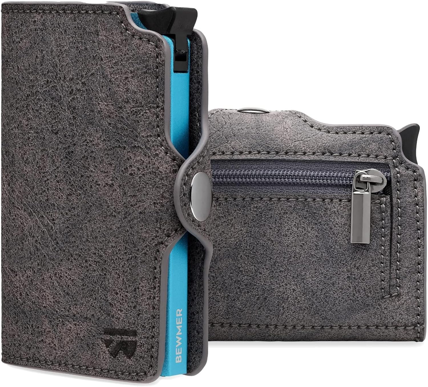 - [SLIM WALLET VOLLER ITALIENISCHER ELEGANZ] BEWMER ist das erste Smart&Slim Portemonnaie mit italienischem Design: Es fasst bis zu 9 Charge-, Debit- oder Kreditkarten (6/7 im Etui und 2 in den Innenfächern) und hat ein praktisches Fach mit einer