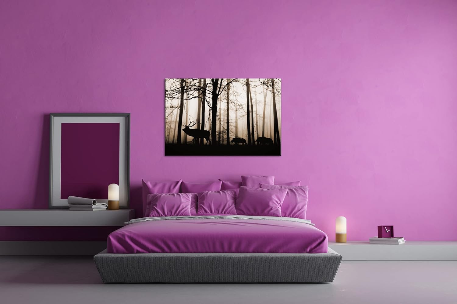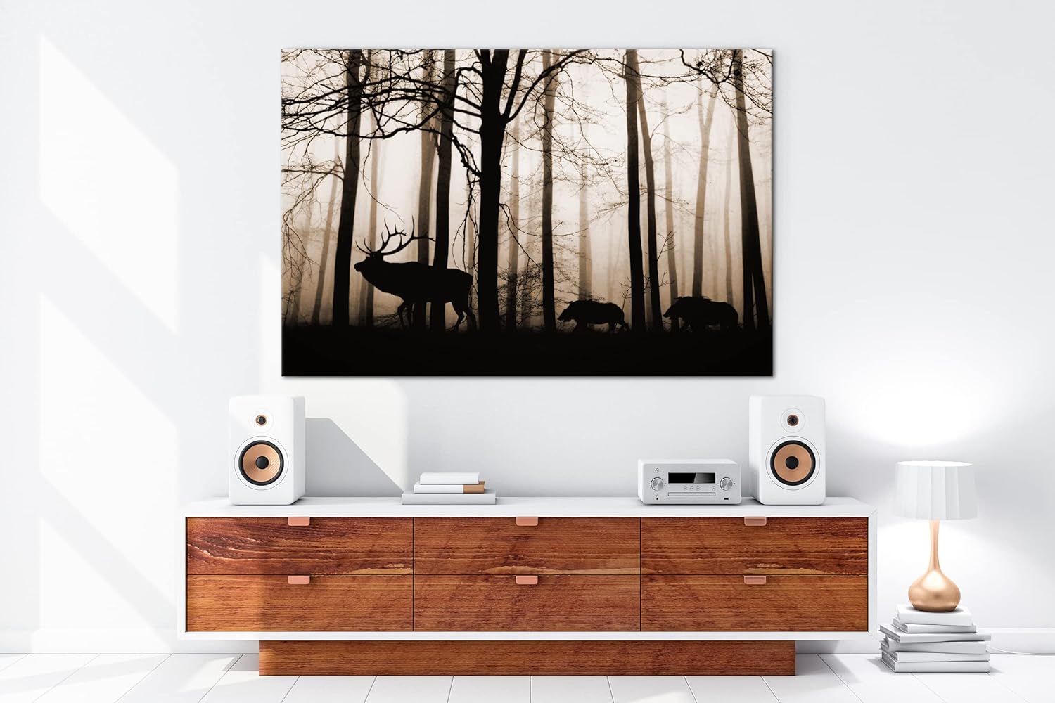 Bewohner des Waldes Format: 80x60 als Leinwand, Effekt: Sepia, Motiv fertig gerahmt auf Echtholzrahm