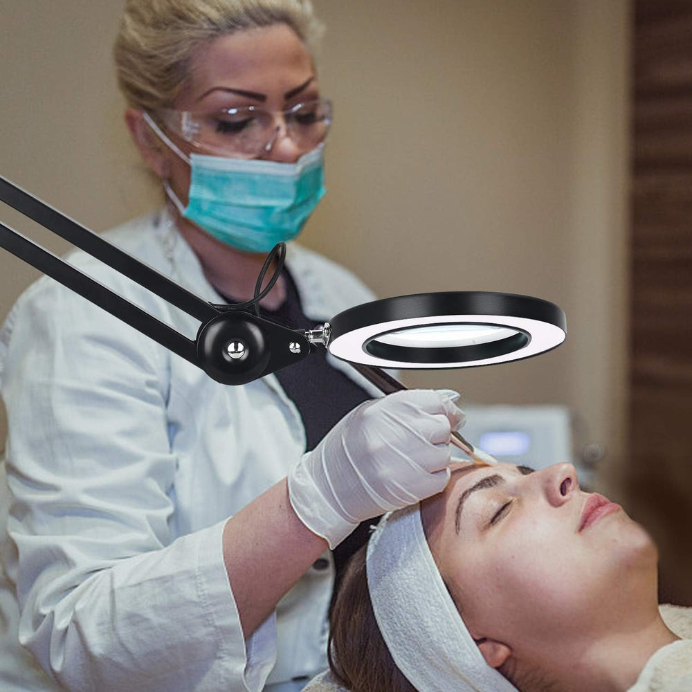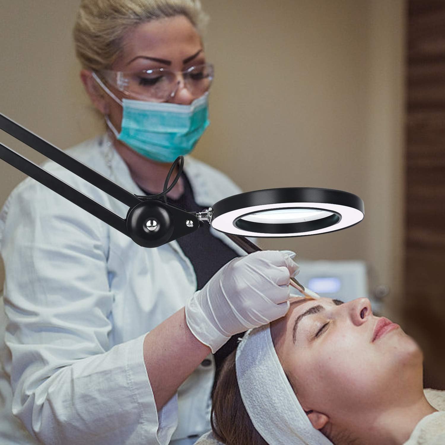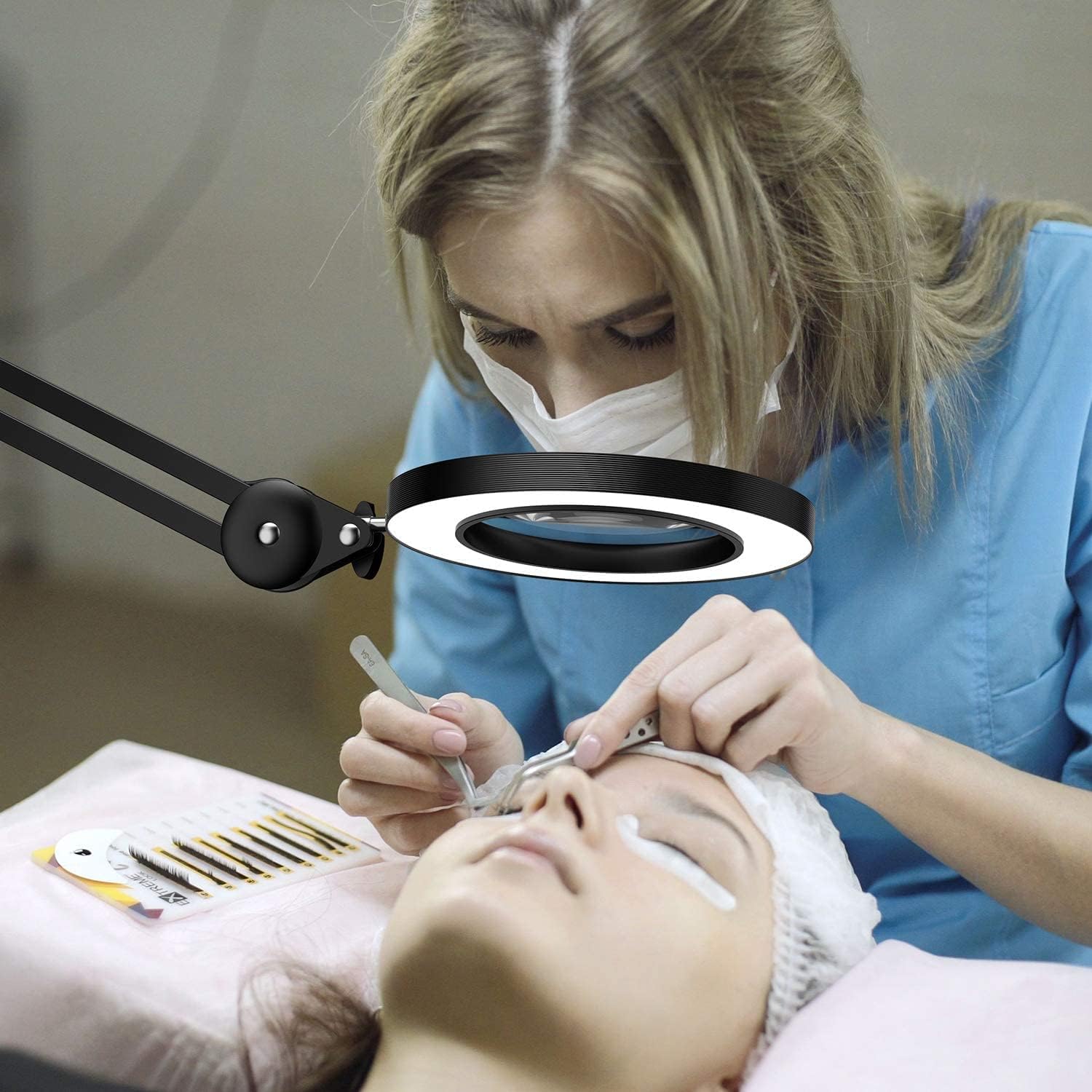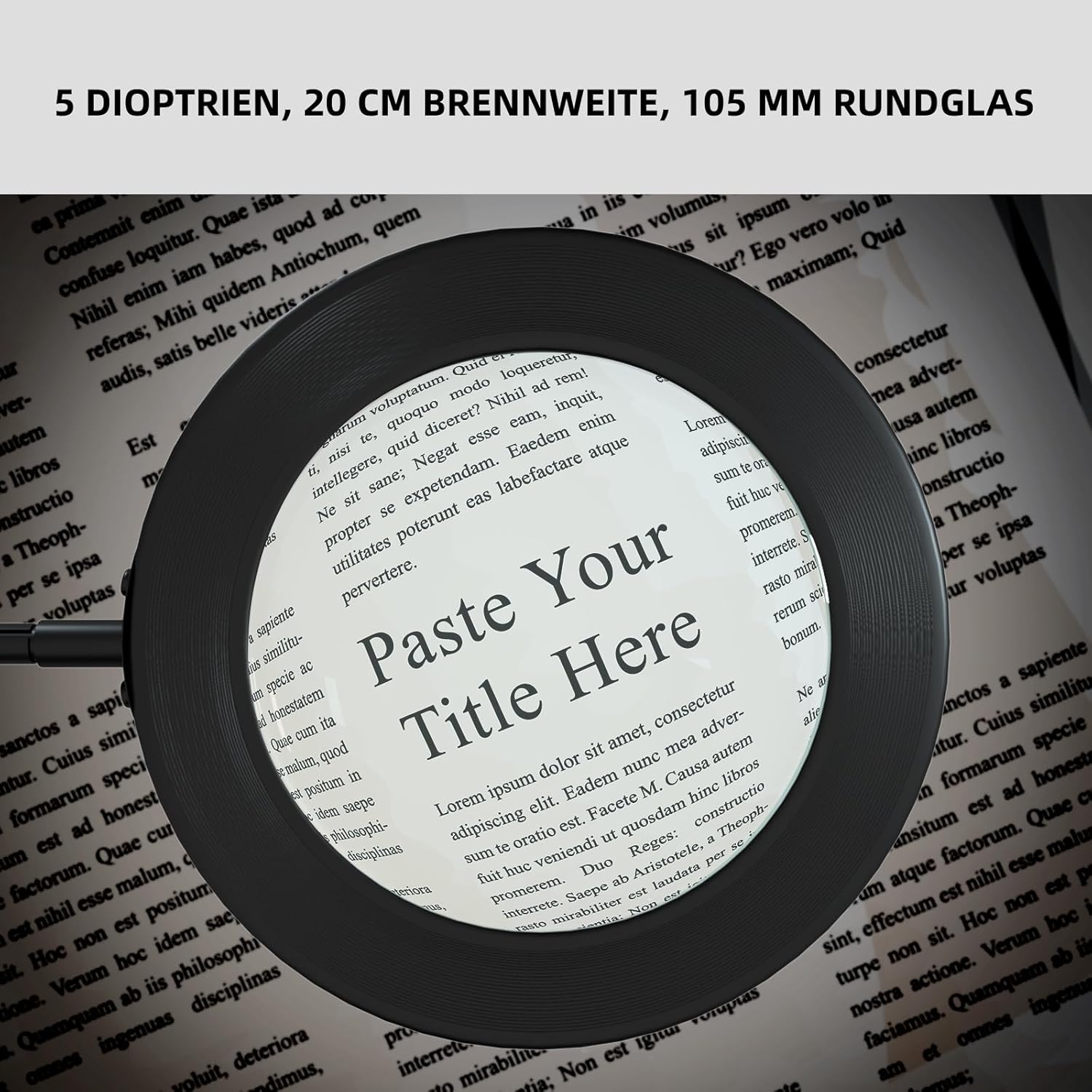 Beyamz LED Lupenleuchte, Arbeitsplatzlampe, 5 Dioptrien Lupe mit Licht - mit Klemme, Schwenkarm, Dim
