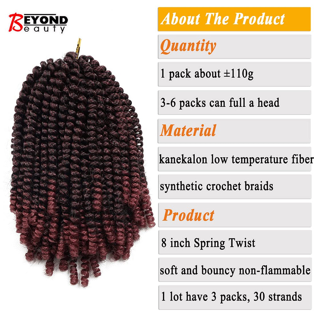 - Haarmaterial:Kanekalon-Haar, 100% Kanekalon-Haarverlängerungen, 8 Zoll Spring Twist
