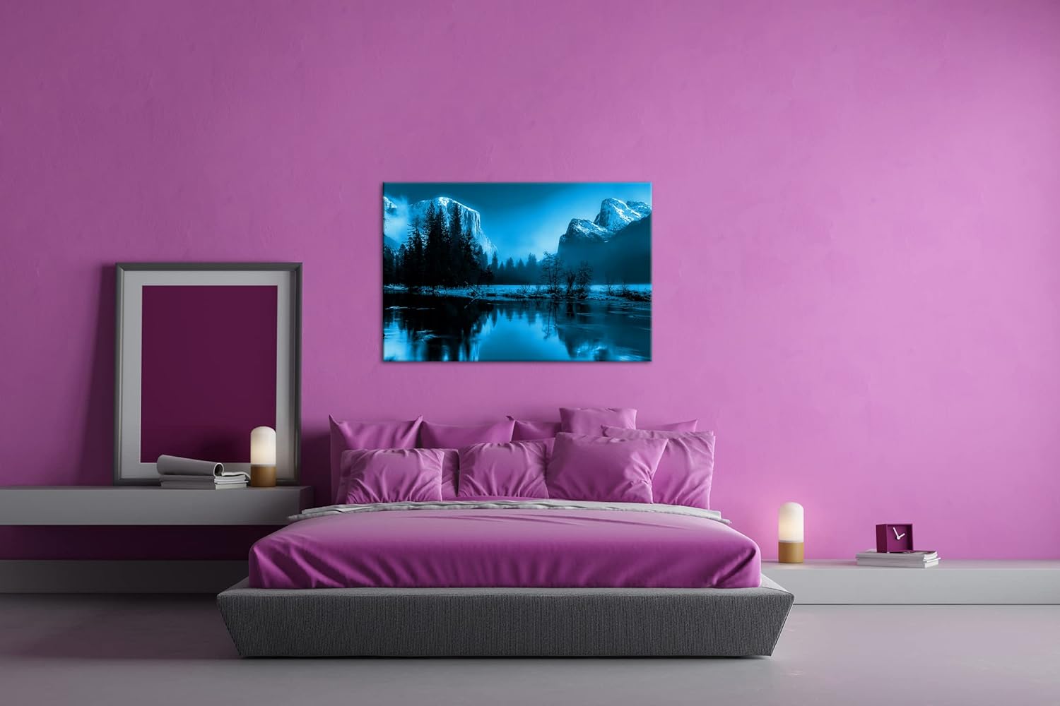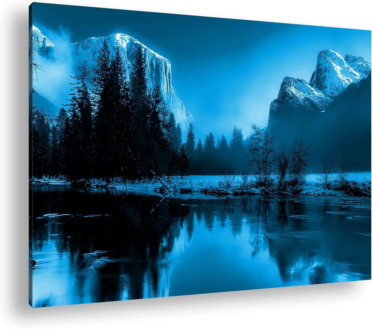 deyoli bezaubernde Eislandschaft an einem Fluss Format 80x60 Effekt: Monocrome Blau als Leinwandbild