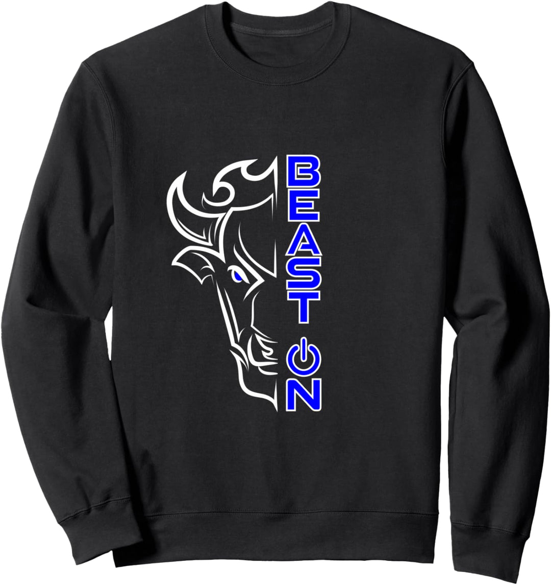 Büffel Bulle Kopf Beast ON Blau Gym Fitness Bodybuilding Sweatshirt