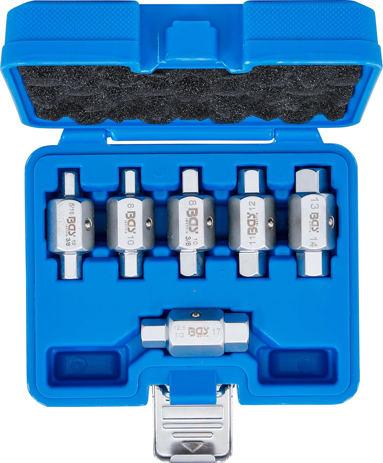- Lieferumfang: Öldienst-Schlüssel Sechskant 5/16 zoll x 10 mm (3/8 zoll) | Öldienst-Schlüssel Vierkant 8 x 10 mm (3/8 zoll) | Öldienst-Schlüssel Sechskant 8 x 10 mm | Öldienst-Schlüssel Vierkant 11 mm x Sechskant 12 mm | Öldienst-Schlüssel