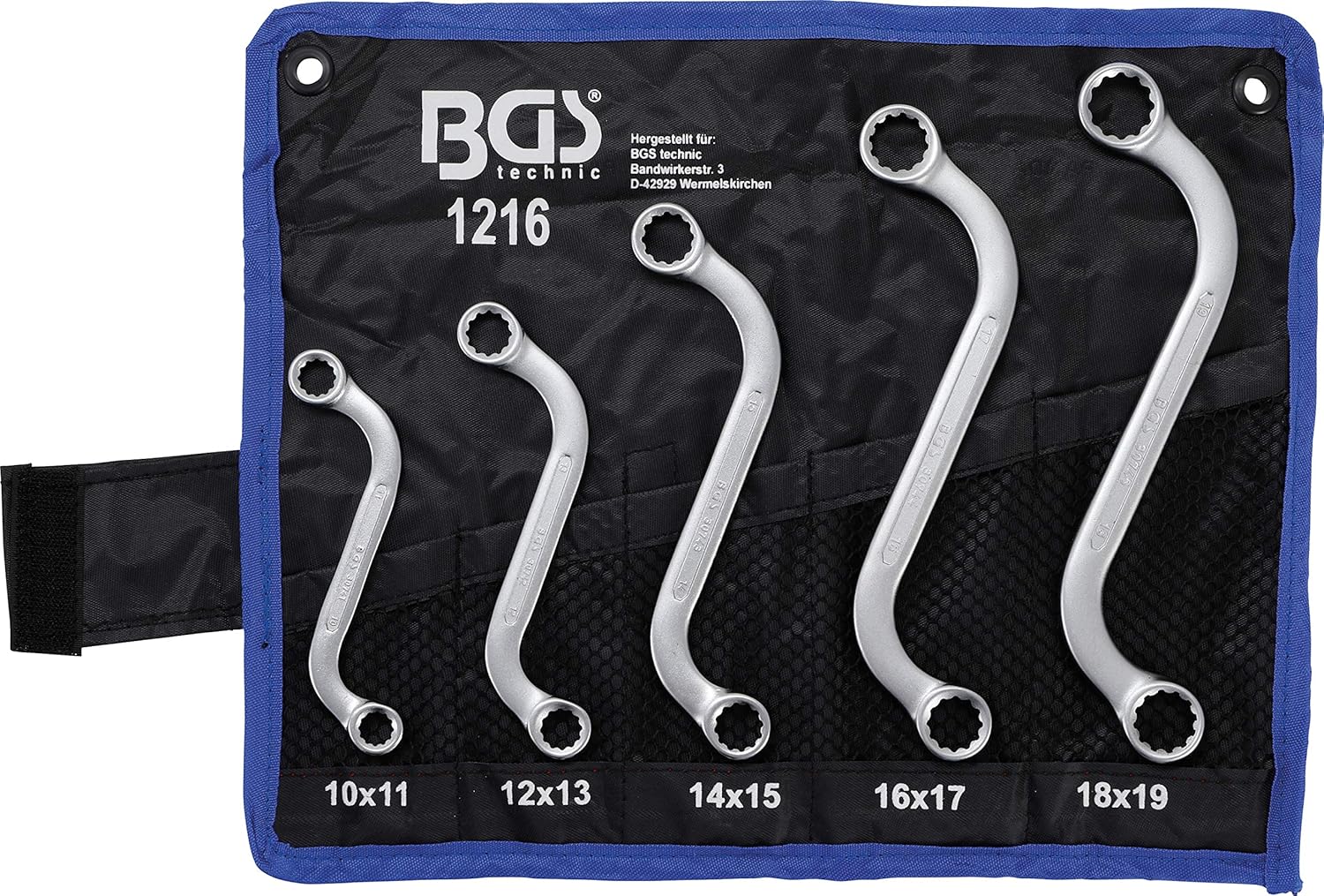 BGS 1216 | Doppel-Ringschlüssel-Satz | 5-tlg. | S-Form | SW 10 x 11 - 18 x 19 mm | inkl. Tetron-Roll