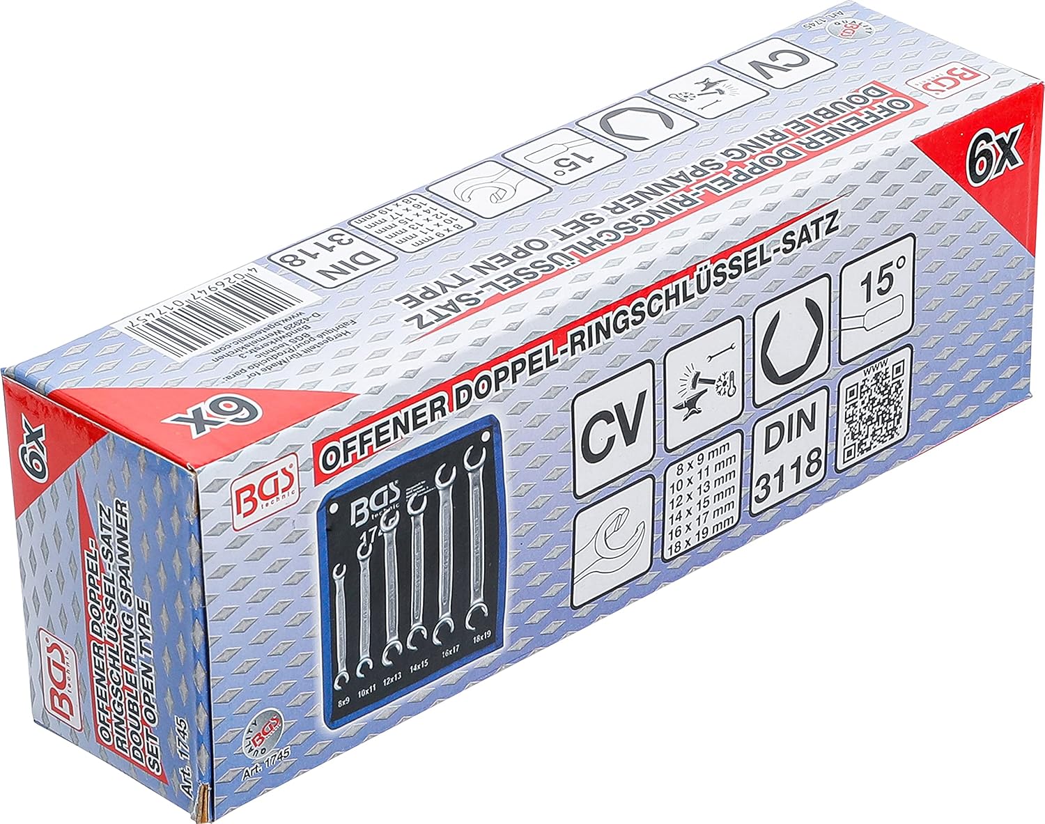 - Offener Doppel-Ringschlüssel SW 8x9 - 10x11 - 12x13 - 14x15 - 16x17 - 18x19 mm