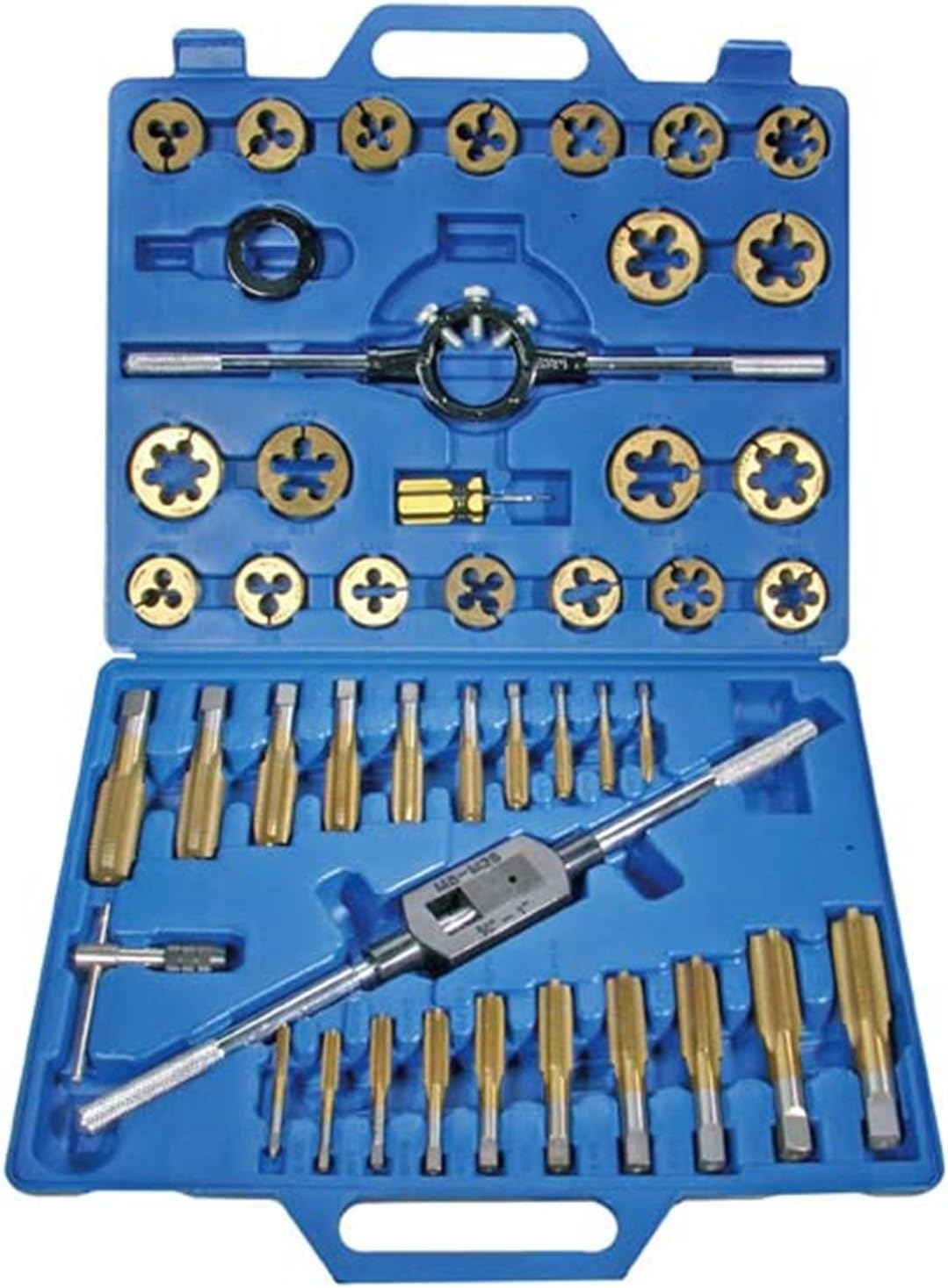 - Produkt 1: 20 Gewindebohrer für Innengewinde und 20 Schneideisen für Aussengewinde (1x je Grösse): M6 x 0,75 - M8 x 1,00 - M6 x 1,00 - M8 x 1,25 - M10 x 1,25 - M10 x 1,5 - M12 x 1,5 - M14 x 1,5 - M16 x 1,5 - M18 x 1,5 - M20 x 1,5 - M22 x 1,5 - M24 x