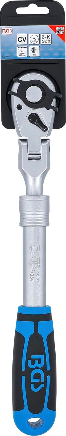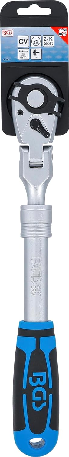 - Abtriebsprofil: Aussenvierkant | Abtriebsprofilgrösse, metrisch: 12,5 mm | Abtriebsprofilgrösse, imperial: 1/2" | Material: Chrom-Vanadium-Stahl | Oberflächenvergütung: verchromt, matt | Anzahl Zähne Knarrenkopf: 72 | Griffart: 2-Komponenten-Griff