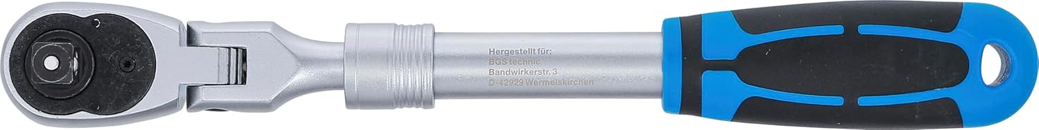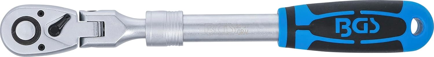- mit flexiblem, in 9 Stufen abwinkelbaren Ratschenkopf, schwenkbar um 180° | Knarrenkopf mit Hebel-Umschaltung zum Wechsel der Schraubrichtung (Rechts/Linkslauf) | Kugelsicherung garantiert einen festen und sicheren Halt der Steckschlüssel-Einsätze
