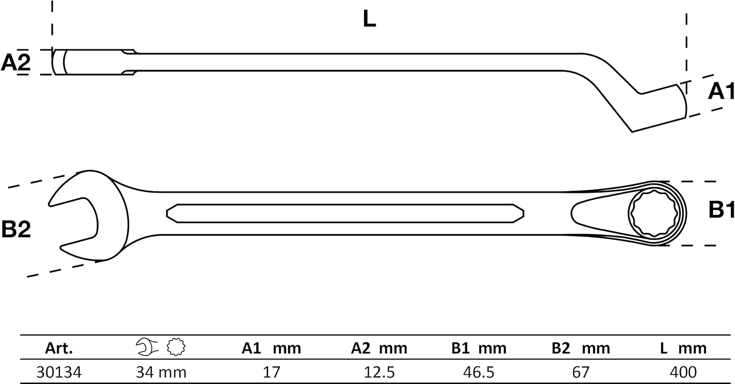 - Schlüsselweite 1: 34 mm | Schlüsselweite 2: 34 mm