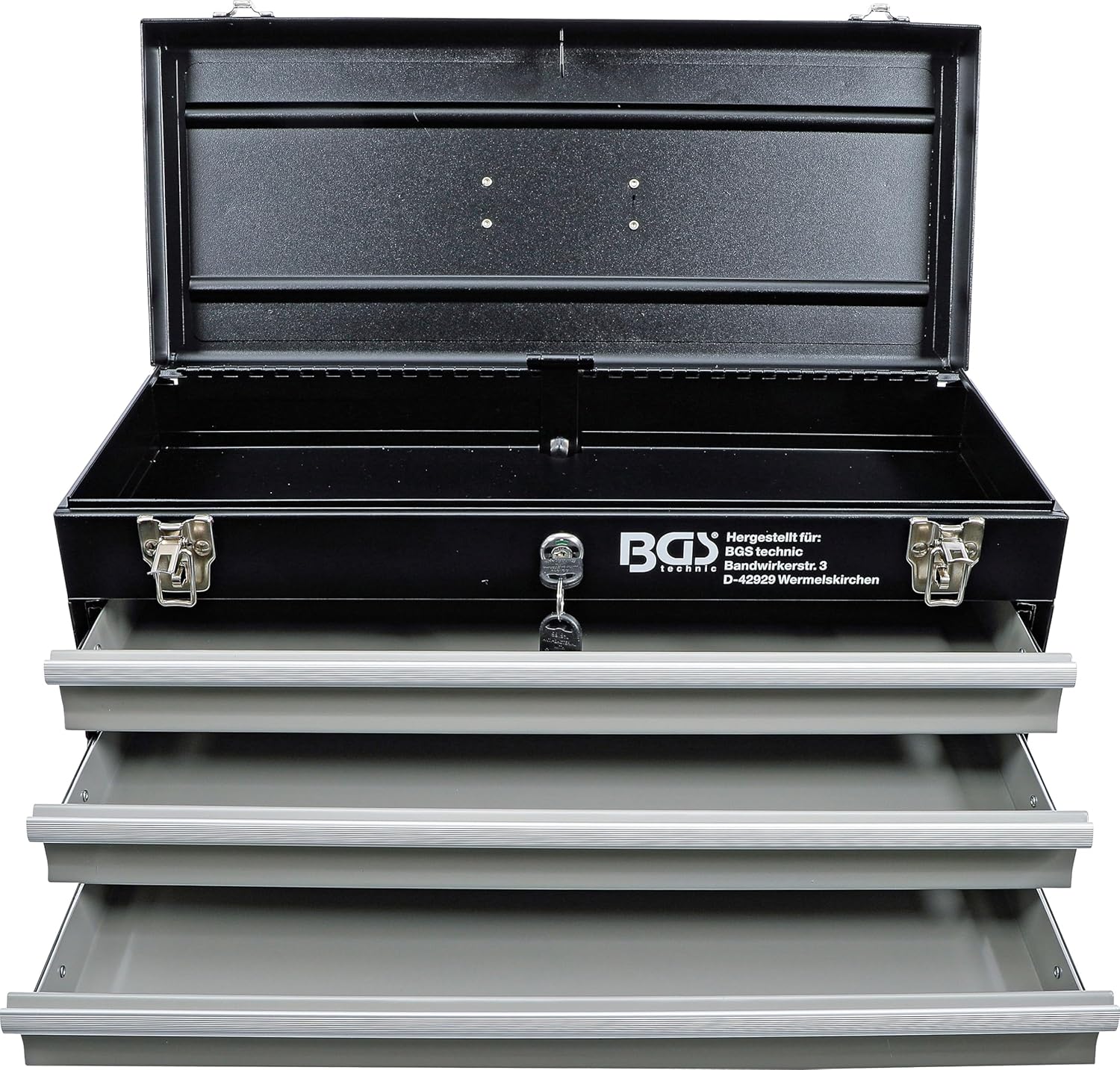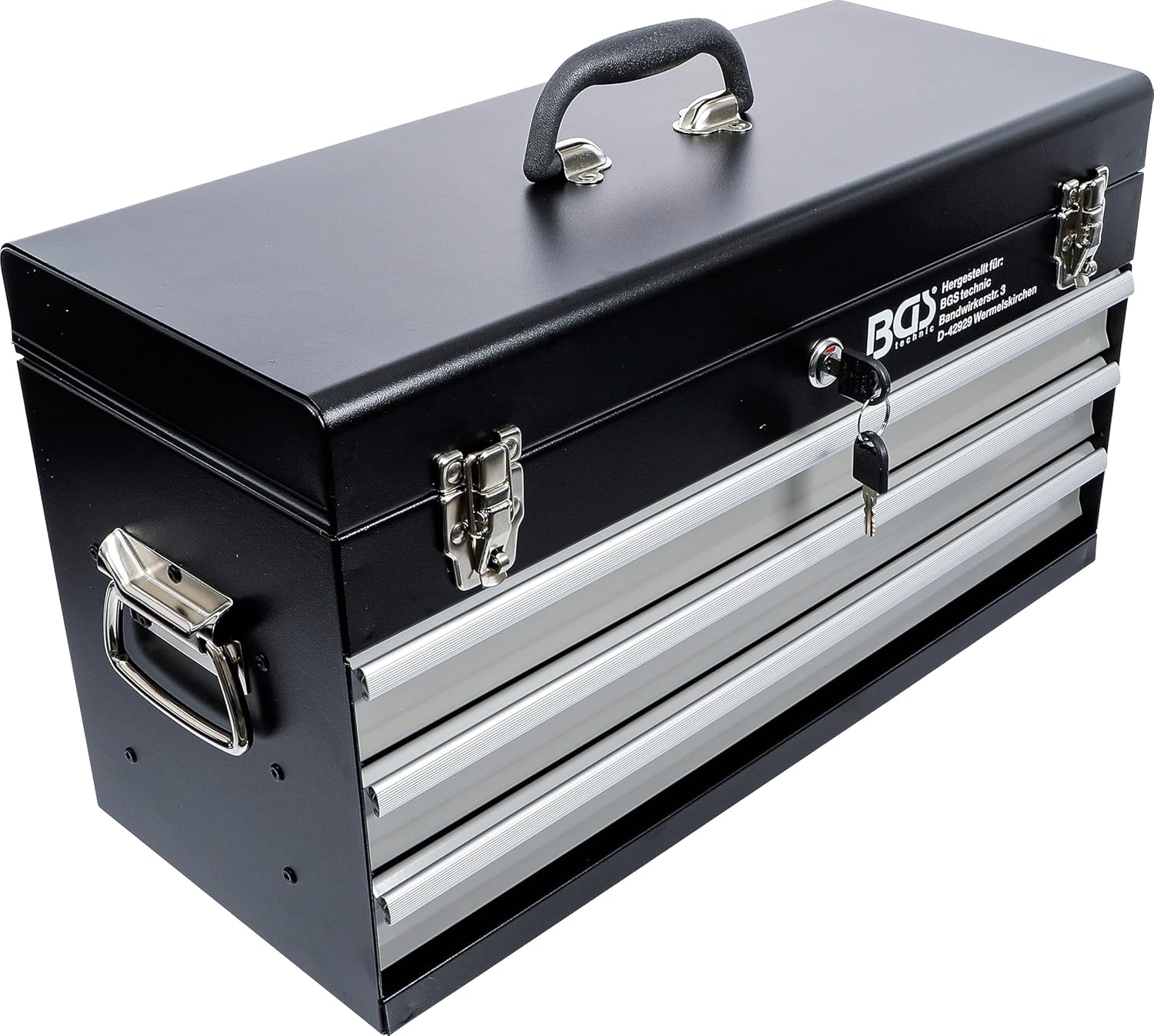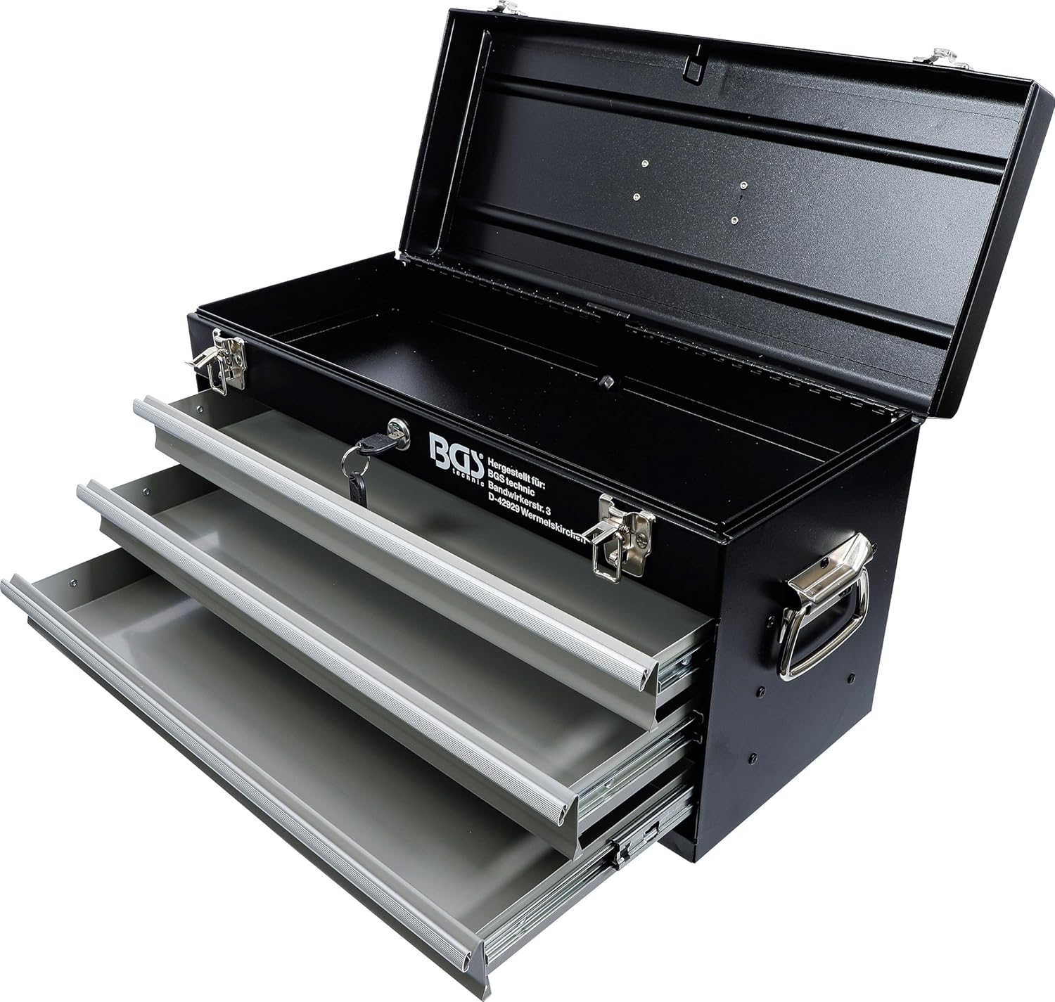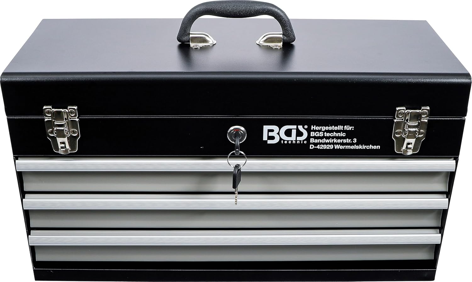 - Schubladen sind bei geschlossenem Deckel verriegelt | 2 seitliche Metalltragegriffe | 1 oberer Kunststofftragegriff