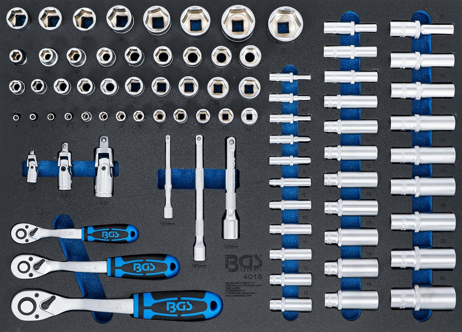 - Kardangelenke Aussen-/Innenvierkant: 6,3 mm (1/4") - 10 mm (3/8") - 12,5 mm (1/2")