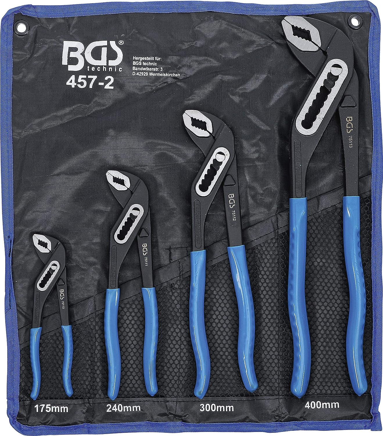 - Wasserpumpenzange 175 mm, Öffnungsmass max. 27 mm | Wasserpumpenzange 240 mm, Öffnungsmass max. 38 mm | Wasserpumpenzange 300 mm, Öffnungsmass max. 44 mm | Wasserpumpenzange 400 mm, Öffnungsmass max. 80 mm